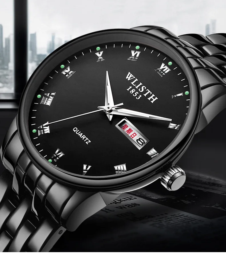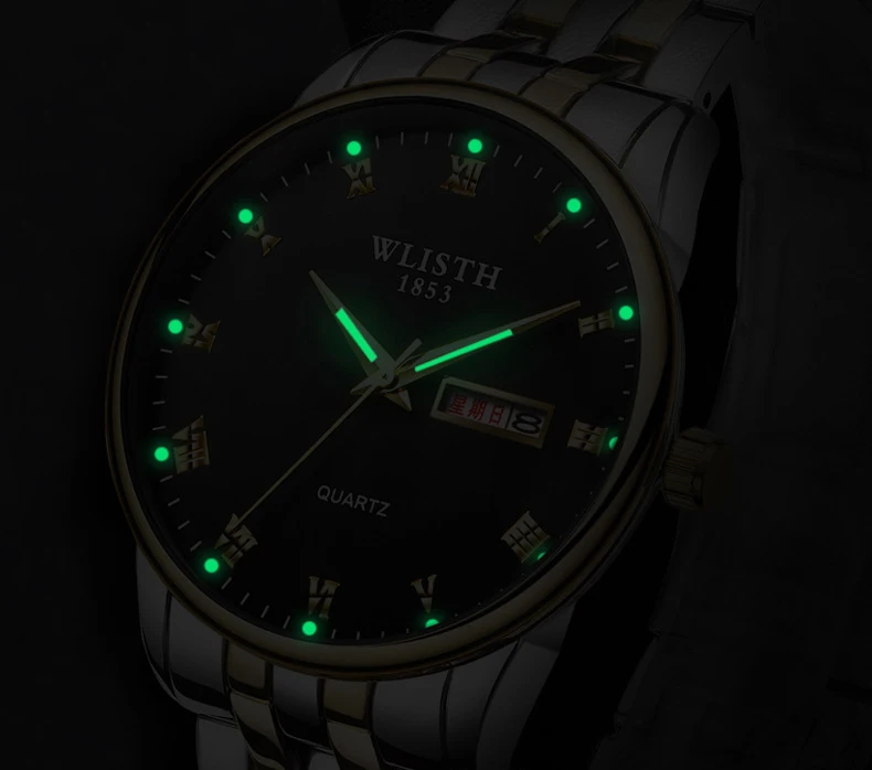 WLISTH абсолютно новые мужские стальные кварцевые наручные часы модные деловые светящиеся водонепроницаемые мужские часы простые мужские часы с отображением дня/даты