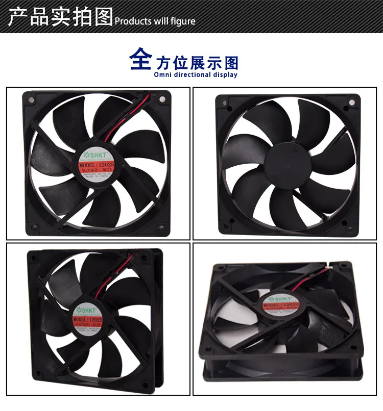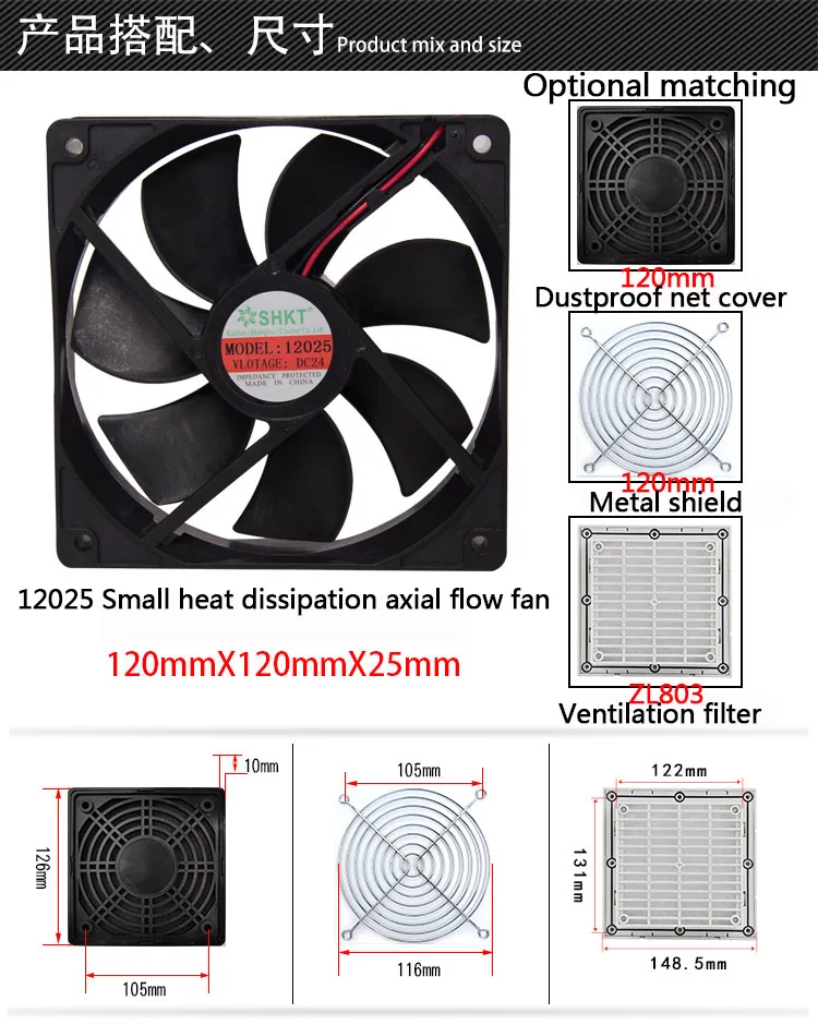 Размеры: 120 мм x 120 мм x 25 мм Разъем: 2P Номинальный Вольт: постоянный ток 12 В/24 В Тип подшипника: двойной шариковый подшипник и муфта Номинальный ток: 0,19а ~ 0,25а Номинальная скорость: 2300 об/мин ~ 2400 об/мин Срок службы: 50000 часов Длина кабеля: 10 см Вес: 120 г/шт. Упаковка включает в себя: 1 шт.