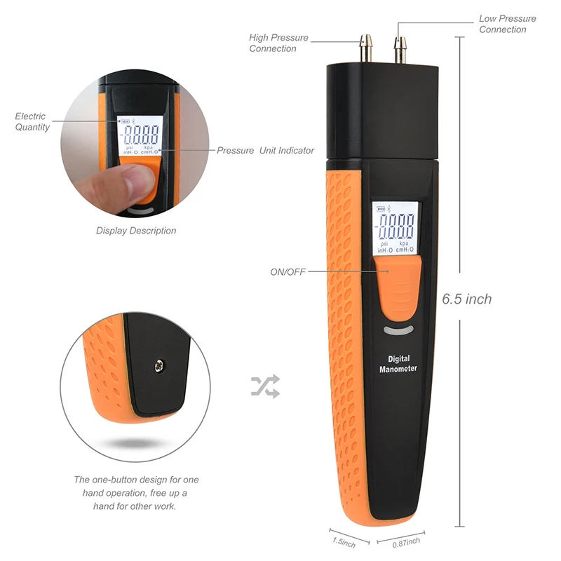 Цифровой манометр с Bluetooth, манометр с двойным портом, датчик давления, HVAC, газовый тестер, манометр перепада давления