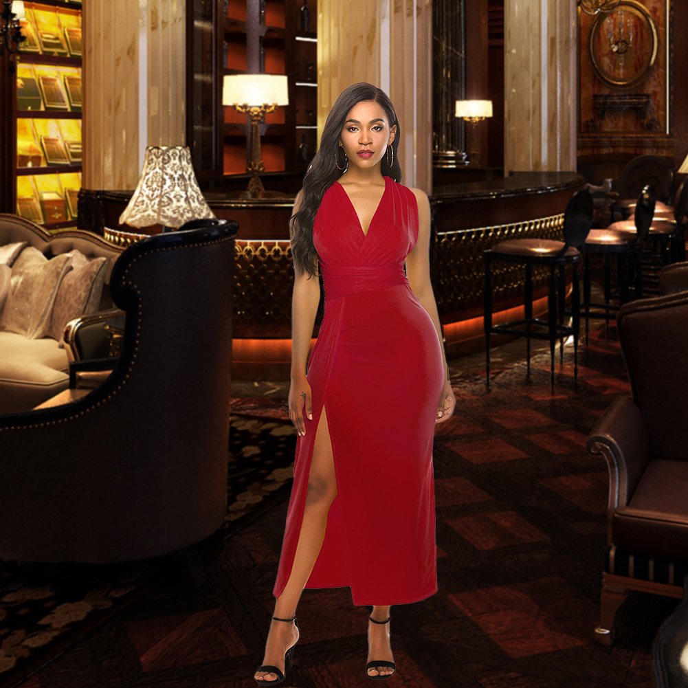 Проводим мульти и меняем? Это многослойное Макси-платье с v-образным вырезом и бантом-лучший выбор