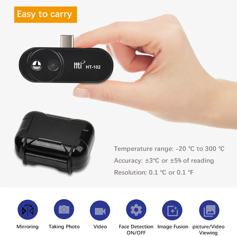 HT-102 термометр Многофункциональный измеритель ручной обнаружения Мобильный телефон инфракрасный черный высокой тепловой Imager для Android