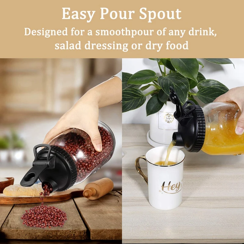 Крышечки для консервирования с широкими банками для Мейсона, чтобы взять немного пищи на ходу или хранение продуктов, таких как бобы и овсянка в вашей кладовой, откидная крышка, хорошо подходит для наливания жидкости и используется с соломинкой для питья лимонов, молоко, йогурт