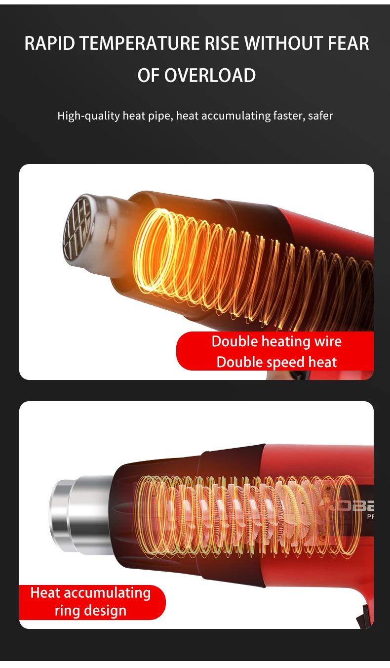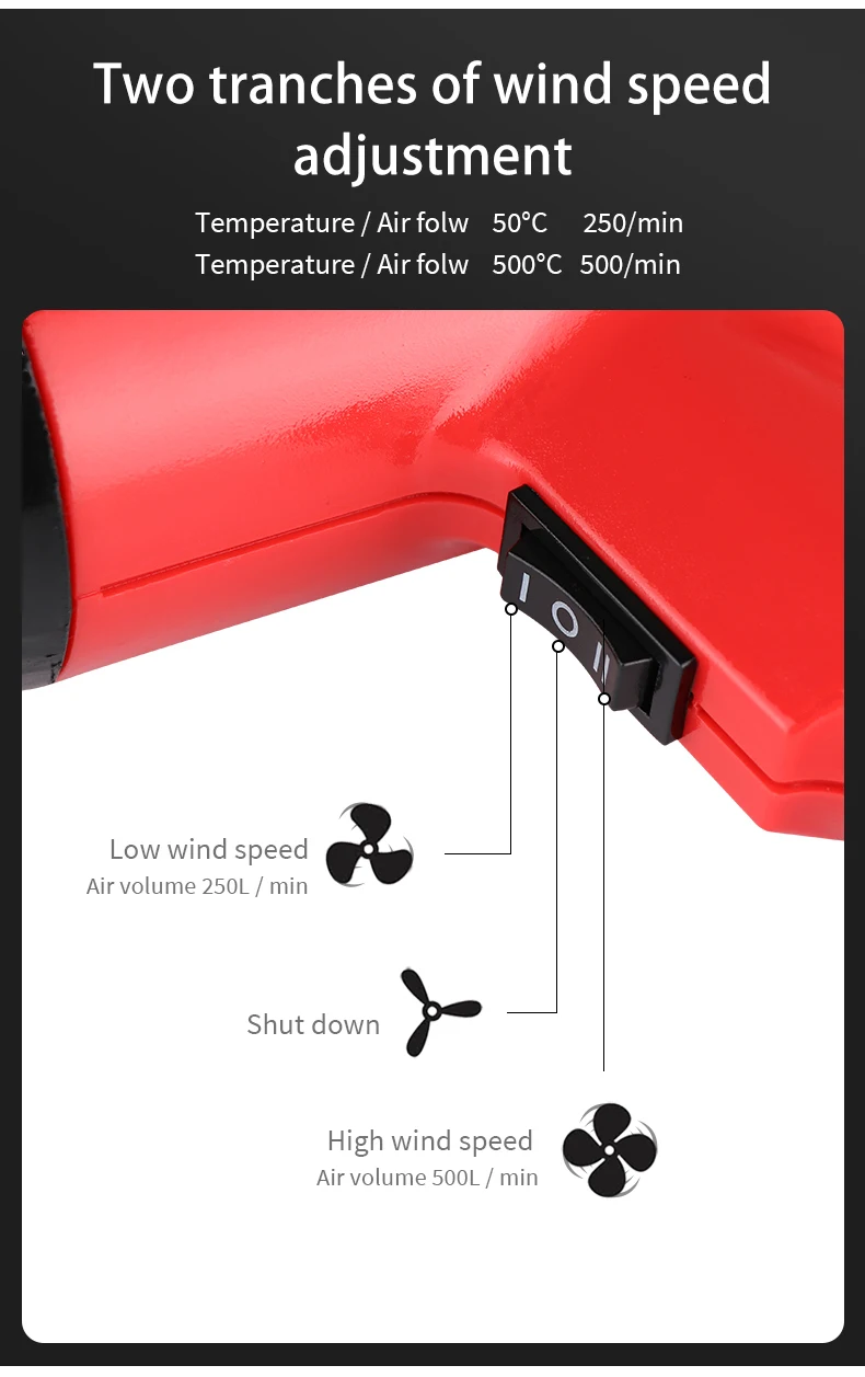 AOBEN Тепловая пушка мощностью 2000 Вт имеет двойную регулировку температуры. Может нагреваться до 50-500 градусов Вы можете легко разморозить криопробирку, раздеть краску, изогнуть трубы, сжечь ПВХ, удалить ржавые болты, пластмассы, а также сушки и оттаивания. Кроме того, встроенная защита от перегрузки отключает отопление стихия вниз и предотвращает выгорание Пакет включает в себя: 1 шт Тепловая пушка 4 шт сопла Что-нибудь случилось с продуктом, пожалуйста, не стесняйтесь обращаться к нам в любое время, мы всегда будем здесь для вас. Штекер: ЕС Plug адаптер поставляется бесплатно