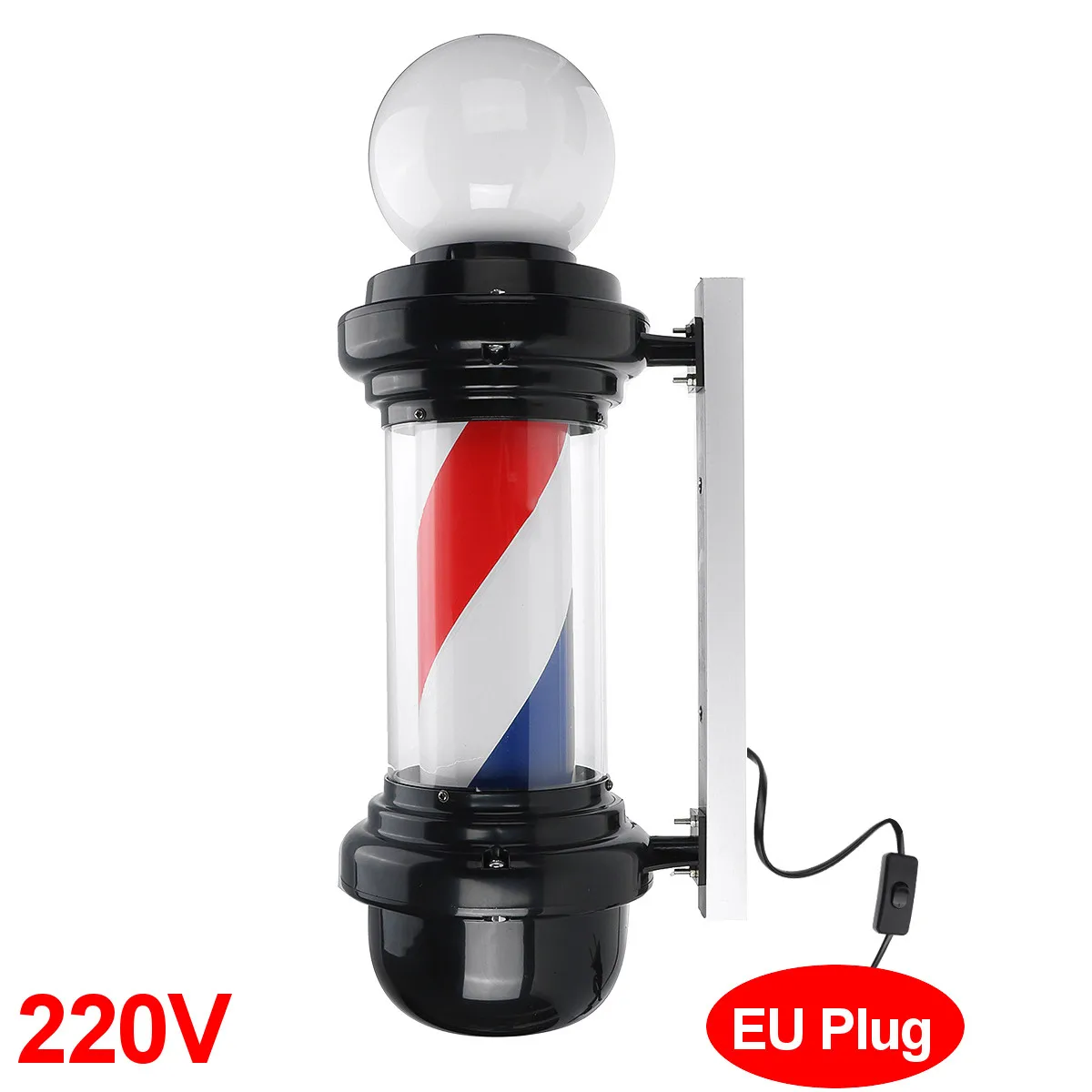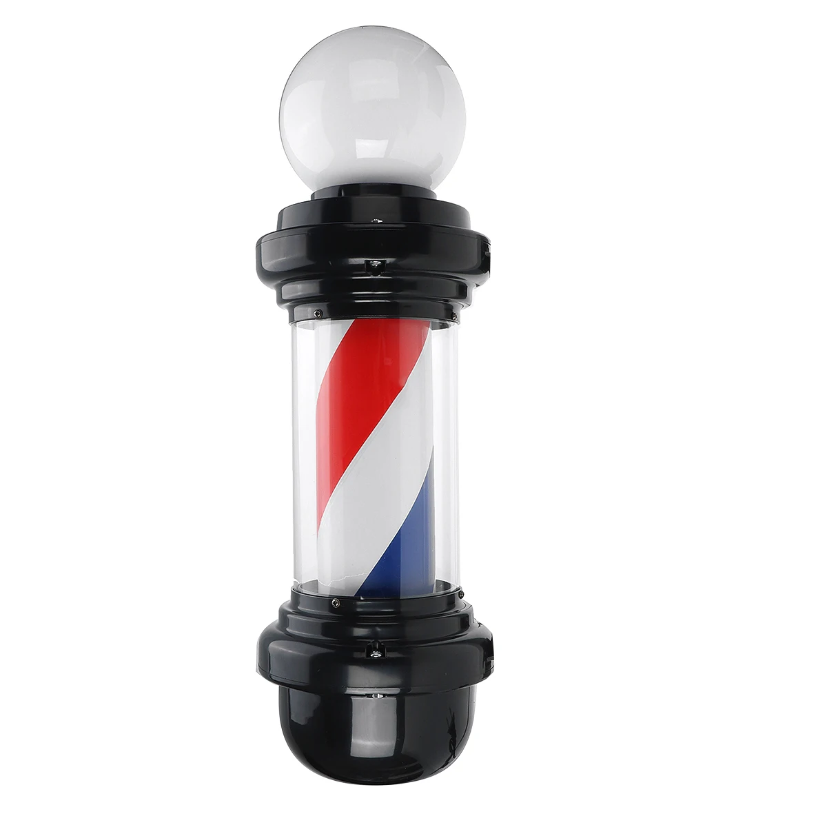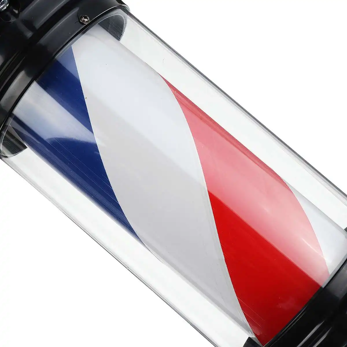 Этот классический парикмахерский столб-отличный способ привлечь внимание ваших клиентов к парикмахерской. Этот красный белый и синий барберпол придает вашему магазину классический вид с традиционным дизайном в полоску. Легкий прочный пластиковый светильник, а также вращающийся вихревой узор помогут вам поймать глаза прохожих и обратить внимание на вашу парикмахерскую. Он изготовлен из прочного покрытого пластика с покрытием стального основания для крепления на стене, готового блестеть ярко, как ваш бизнес. Полюс посылает мягкий и ярко-синий и белый светильник, довольно привлекательный.