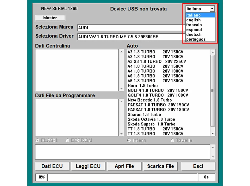 Поддержка системы ECU Flasher Galletto 1260: Xp 32 bit , WIN 7 32 bit обновление: по электронной почте, CD или по ссылке Donwload. Язык: английский, французский, итальянский, немецкий, испанский и португальский.