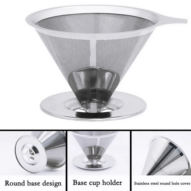 -- Safe and durable: This fine mesh dual stainless coffee filter is made of 304 stainless steel, no paper filters needed. its reinforced steel mesh is durable, allowing brewing at the perfect rate.