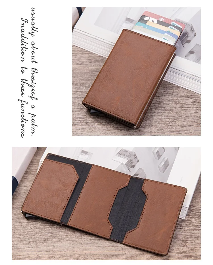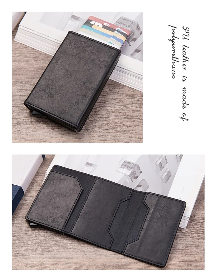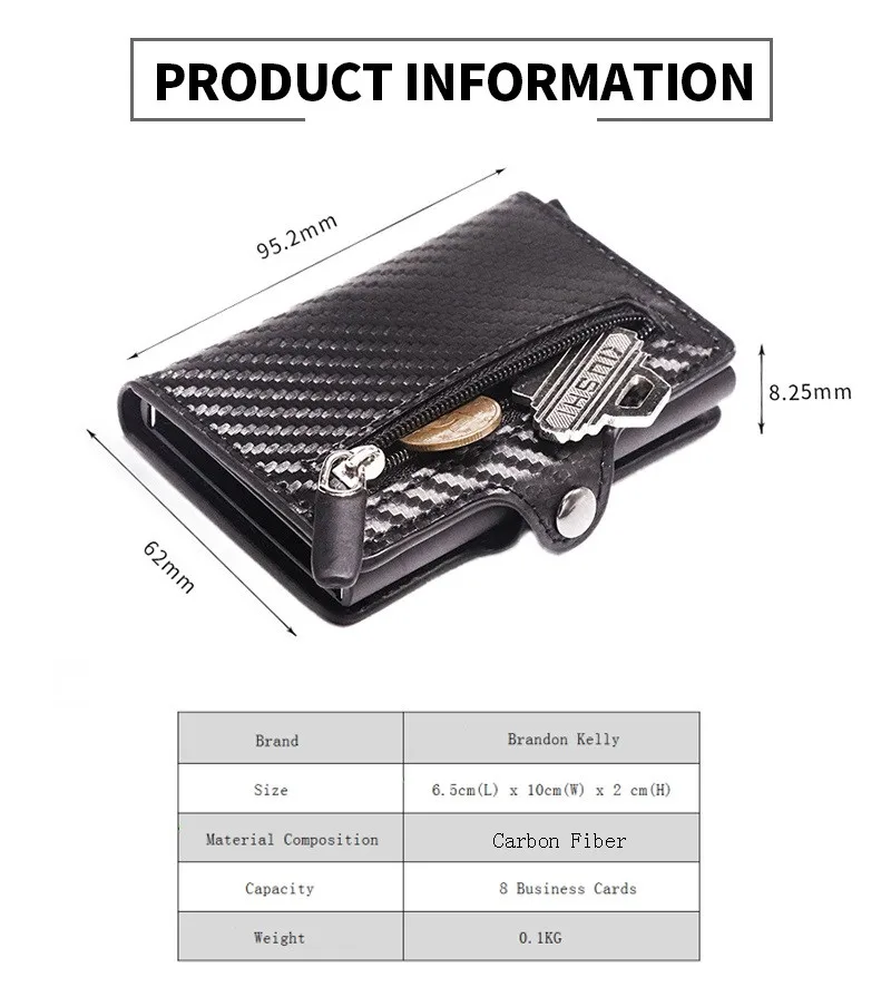 Чехол-держатель для карт с защитой от радиочастотной идентификации, мужской кожаный металлический кошелек, мужской кошелек, Женский мини-карбоновый держатель для кредитных карт на молнии