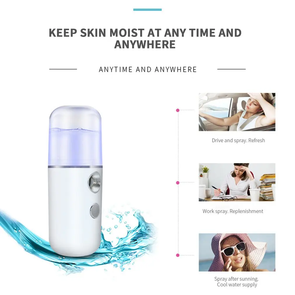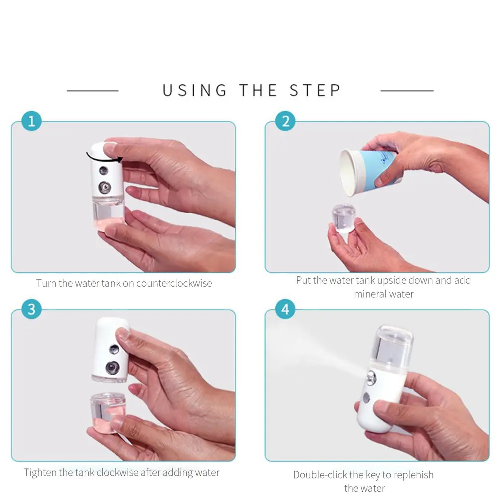 3. Компактный и легкий: Этот продукт небольшой и легкий, его можно носить с собой, сохраняя кожу увлажненной в любое время и в любом месте.