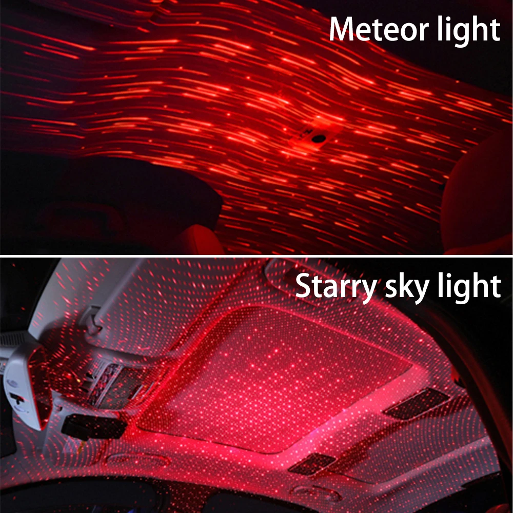 Гибкий красный Звездный метеоритный светильник, светодиодный светильник для автомобиля, музыкальный звук, пульт дистанционного управления, лазерный светильник, USB, декоративная лампа для интерьера автомобиля