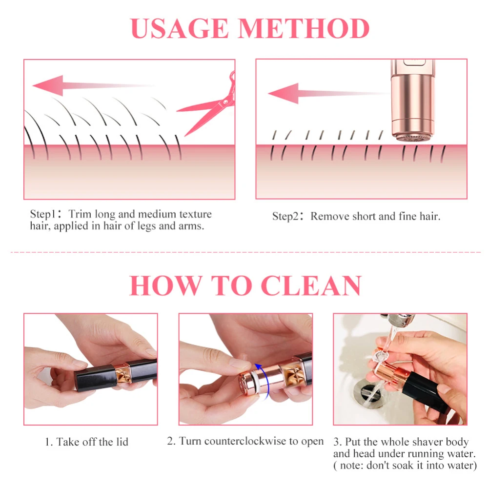 Особенности: Дизайн помады, портативный размер. Безопасность, практичность и деликатный портативный. Портативный размер, легко носить с собой и использовать. Достаточно мягкий, чтобы использовать каждый день, дает вам превосходную производительность в эпиляции, обеспечивая Вам идеальную и длительную гладкость. Компактный и легкий дизайн позволяет легко переносить. Подходит для всех женщин, которые являются искателями красоты. Описание: Может быть применен для домашнего использования и профессиональных работников. Он может прослужить долго и не навредит вашей нежной коже вокруг глаз. Удаляет волосы на лице мгновенно и безболезненно с губ, подбородка, щек. Предназначен для удаления нежелательных волос на лице и теле. Это легкий и безболезненный способ избавления от нежелательных волос на лице или на теле. Технические характеристики: Материал: металл Цвет: розовое золото, белый, черный, синий, красный, розовый Питание: от 1 батарейки AA (не входят в комплект) Размер: 100*90*25 мм Посылка включает в себя: 1 x безболезненное электрическое средство для удаления волос (без розничной упаковки)