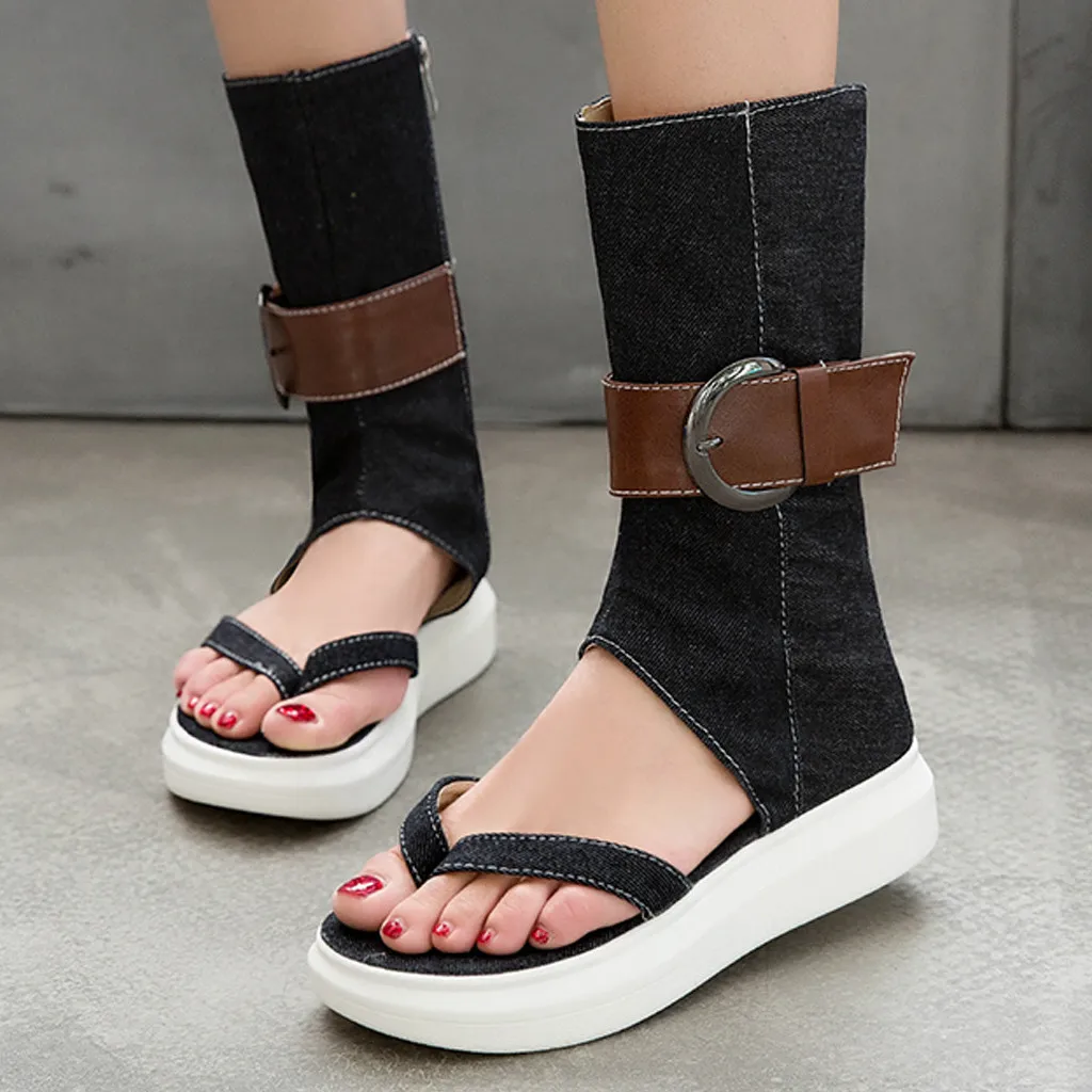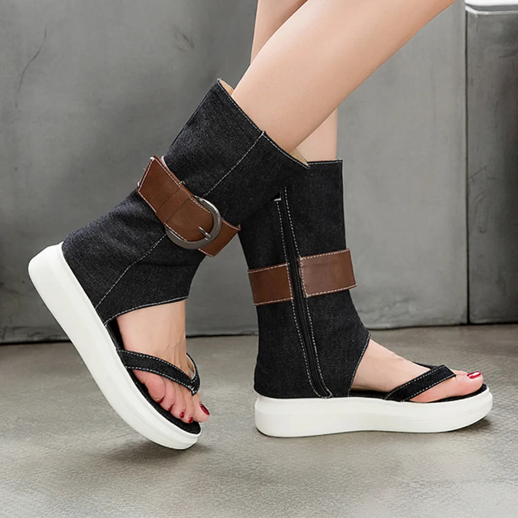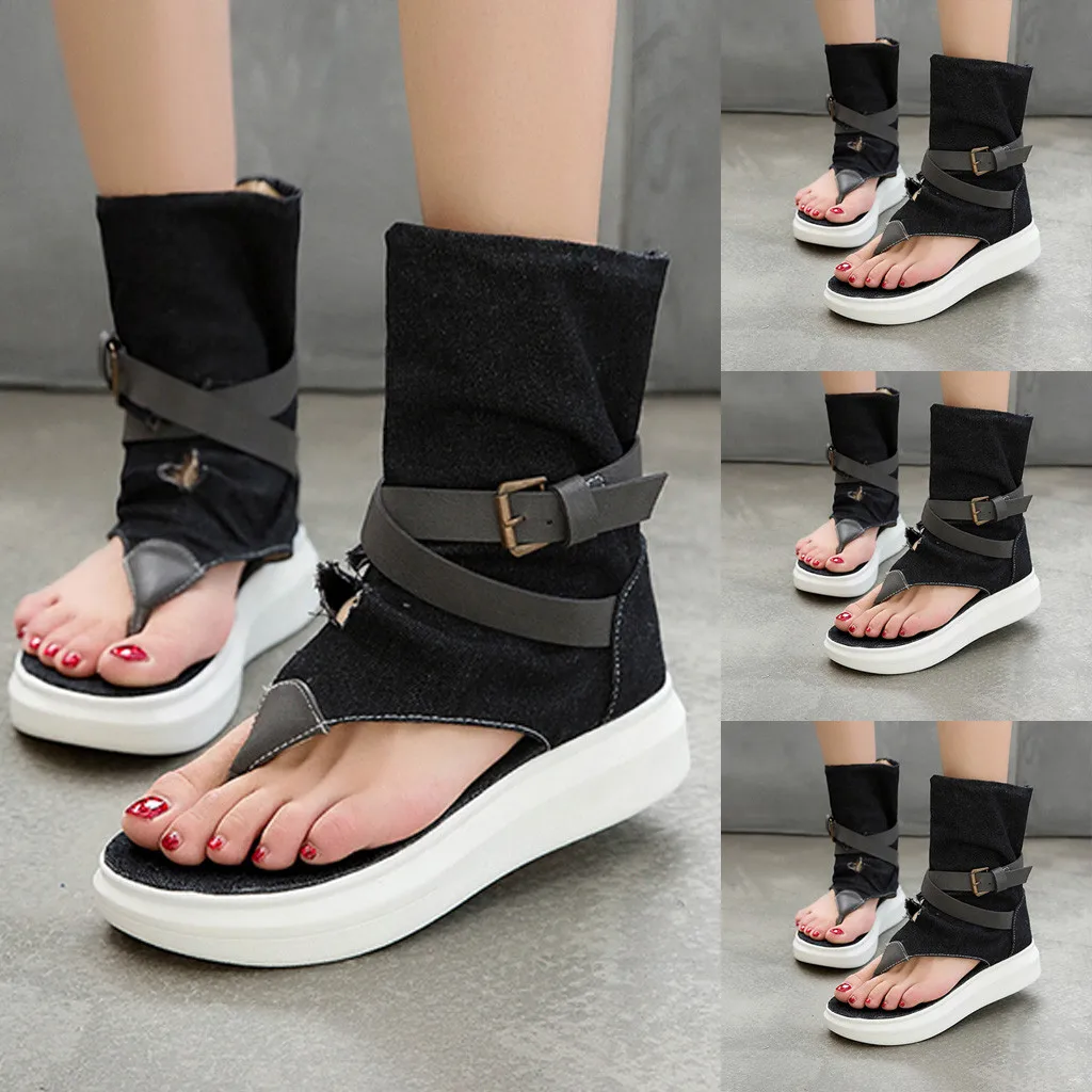 Женские Вьетнамки; повседневные римские сандалии на толстой подошве; женская обувь с боковой молнией и пряжкой