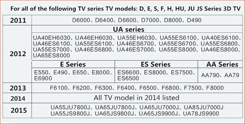 Совместимый с 2011-2014 Samsung 3D TV (H, D, E, ES и другими новыми серии F)