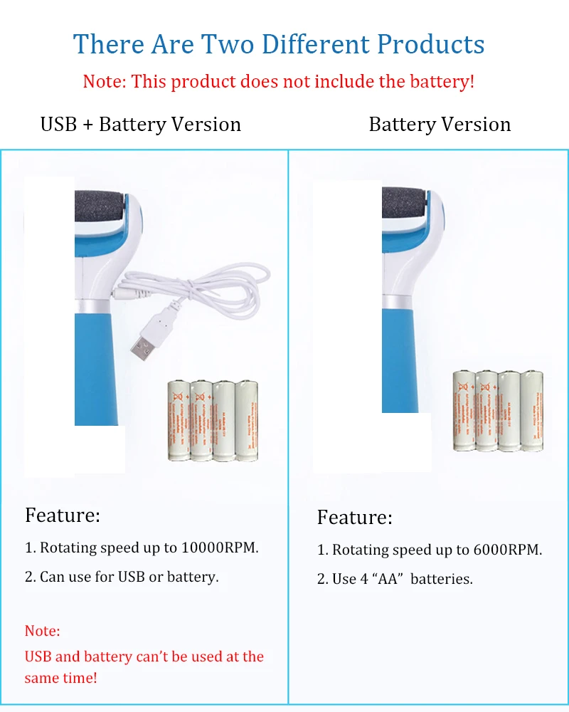 Параметры: Материал: нержавеющая сталь, АБС-пластик, карбид кремния Есть два стиля: розовый и синий. Но в комплект поставки не входит аккумулятор. Другой-розовый USB и синий USB. Размер: 175*75*50 мм Категория: электрическая пилка для ног Материал: нержавеющая сталь, АБС-пластик, карбид кремния Спецификация: 175*75*50 мм Этот продукт имеет два стиля, это USB стиль, который может быть непосредственно заряжен через компьютер или другие устройства. Пожалуйста, обратите внимание: 1. Этот продукт не включает батарею! 2. Питание от USB и аккумулятор не могут использоваться одновременно!