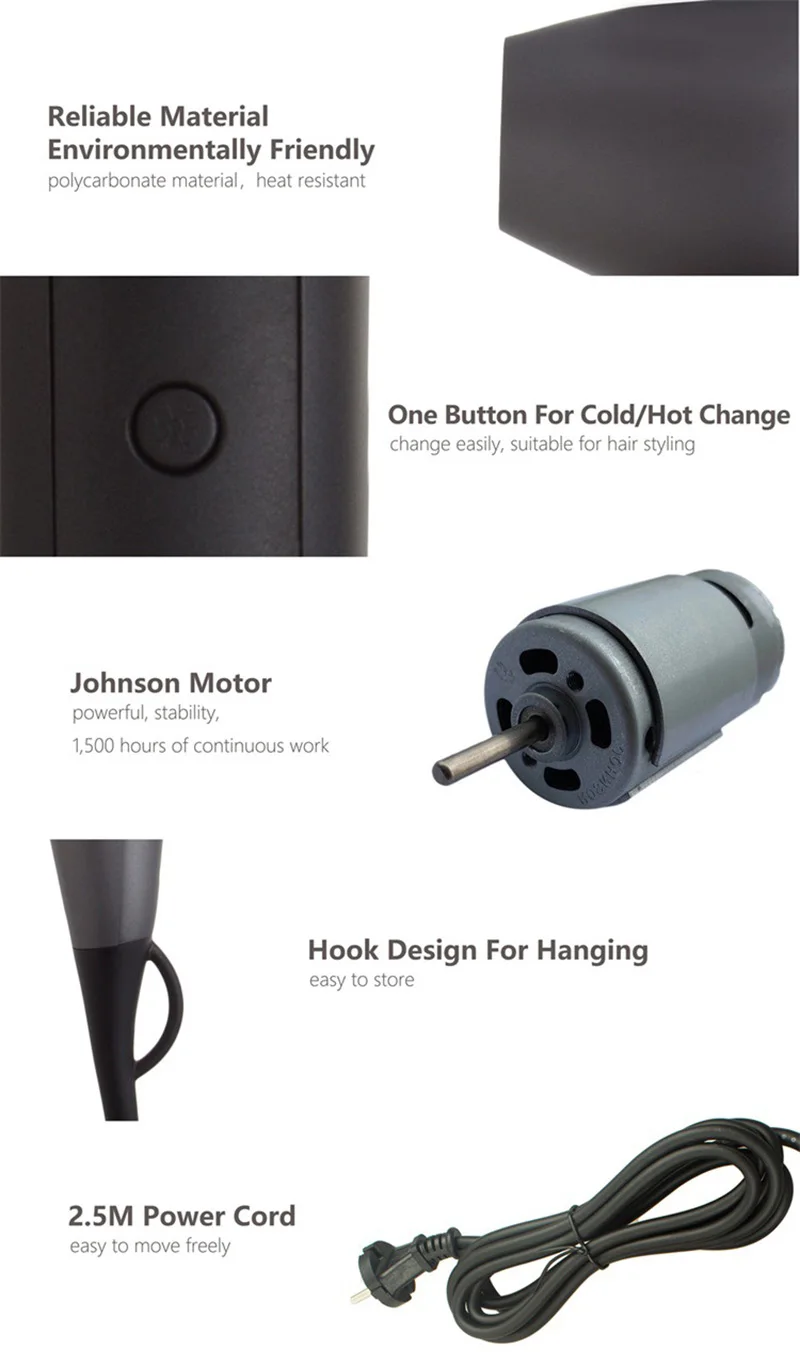 Скорость передачи: шесть передач Стильный комплект с ветровым горлышком + разбросанный ветряной рот Функция: отрицательные ионы, горячий и холодный воздух, постоянная температура Защита от перегрева: Да Номинальное напряжение: 110 В/220 В (V) Нагревательная проволока: гофрированная проволока Двигатель: DC johnson Мощность: 1600 Вт-1470 Вт Фактическая мощность Напряжение: один Напряжение 220V / 110V Переключатель: ручка Smart Sensor Характеристики: есть гигантский энергетический Анионный генератор, который в 7 раз больше обычных анионных функциональных продуктов.