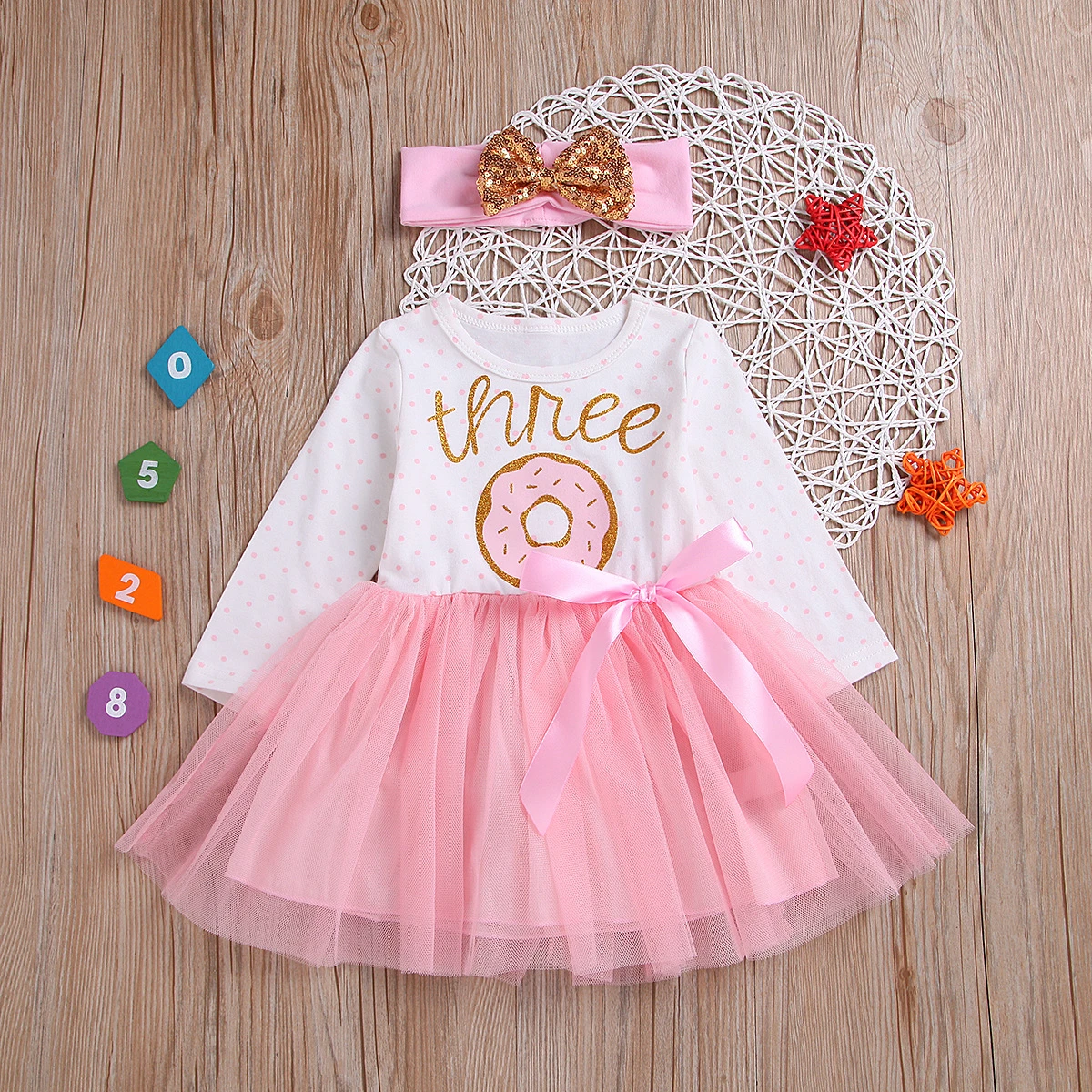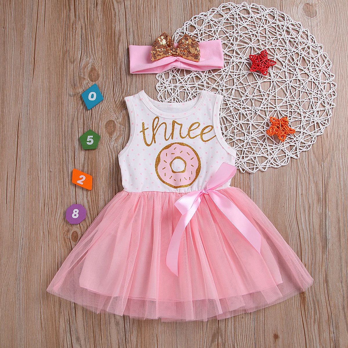 Платье для дня рождения с цифрой один, два, три для маленьких девочек нарядное платье принцессы из тюля с надписями и пончиком + повязка на голову для малышей от 6 до 24 месяцев