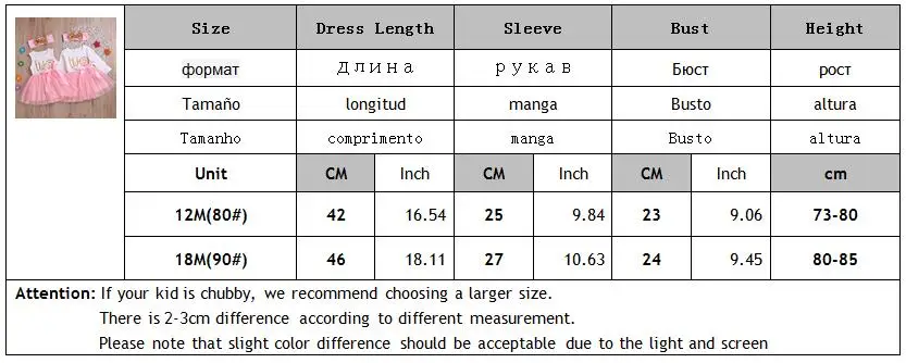 Платье на день рождения для маленьких девочек 3 лет; Таблица размеров