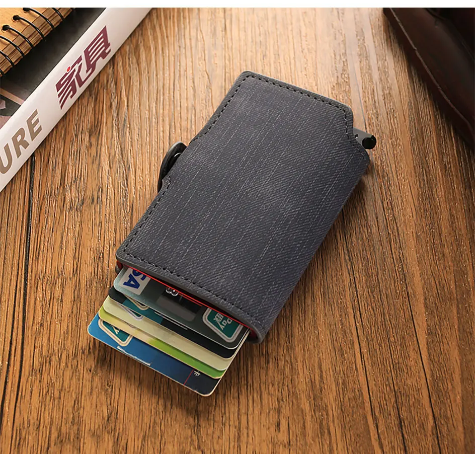 Карбоновые держатели для карт, кошельки для мужчин, брендовый кожаный мини тонкий кошелек, сумка для денег, металлический RFID, женский тонкий маленький смарт-кошелек