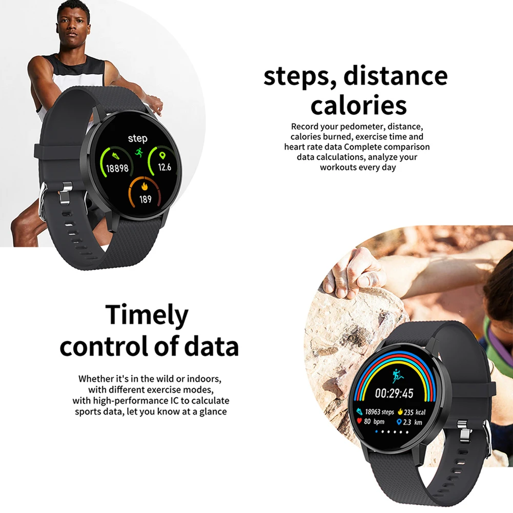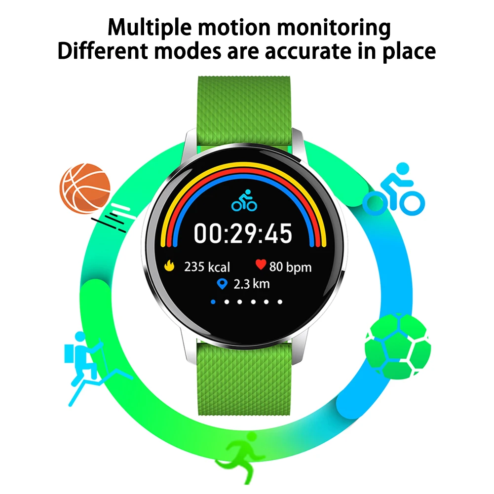All-day Activity Tracking --- Bluetooth running fitness tracker accurately record all-day activities like steps, distance, calories burned, active minutes. Special sport modes for walking, running, cycling, football, basketball, badminton.