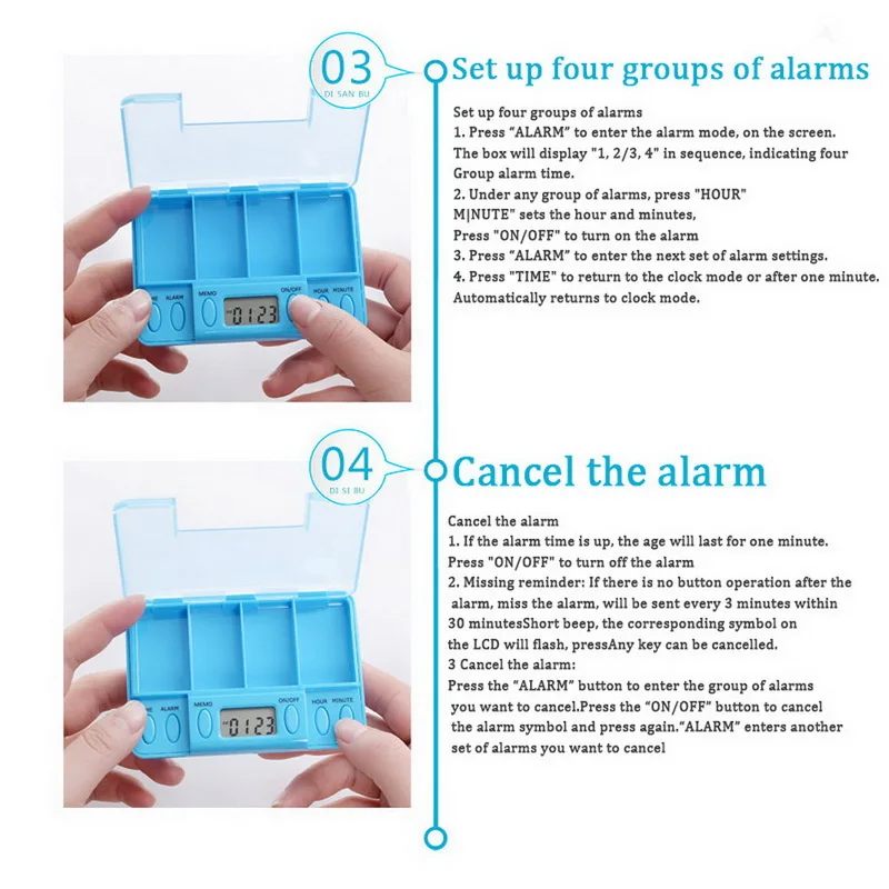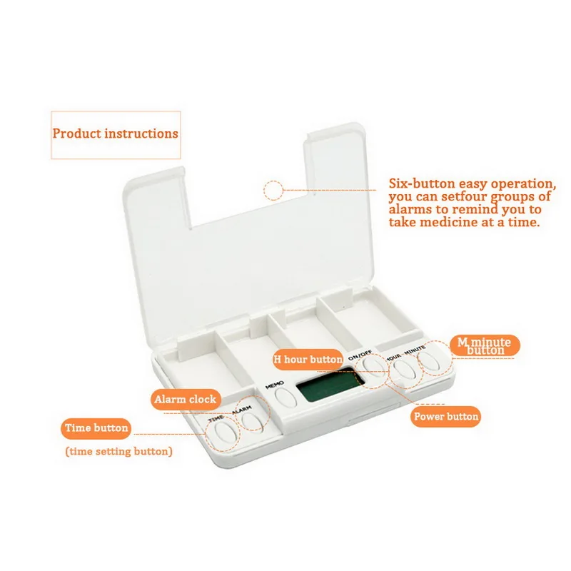 4 сетки интеллектуальный пластиковый ящик для хранения электронный таймер напоминания медицина коробки будильник таймер таблетки настольный органайзер контейнер для таблеток