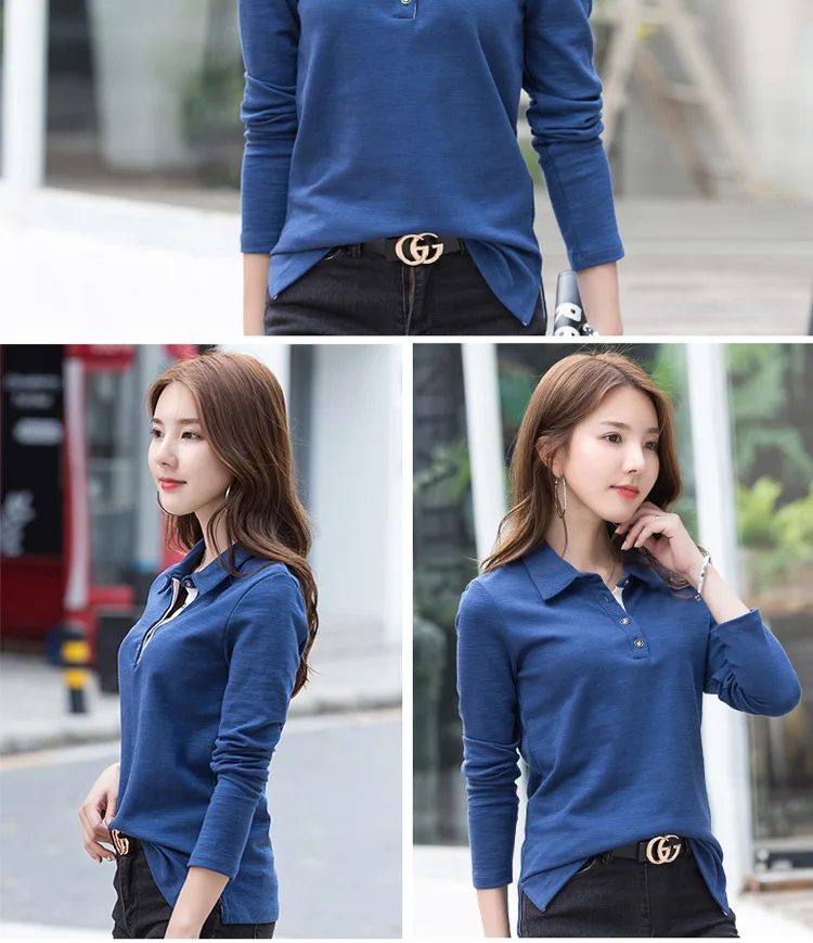 WinterAutumn Casual Polo Women 2018 New Long Sleeve Slim Polos Mujer Black White Red Tops Lady Polo Shirt Femme A558
