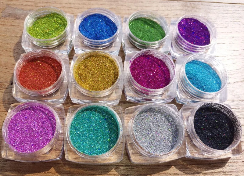 12Jar/Set Nail Glitter Holographic Powder 0.1MM(1/256") 004inch Holo Fine Powder 12-Color (Silver/Gold/Black) Nails Laser Powder
