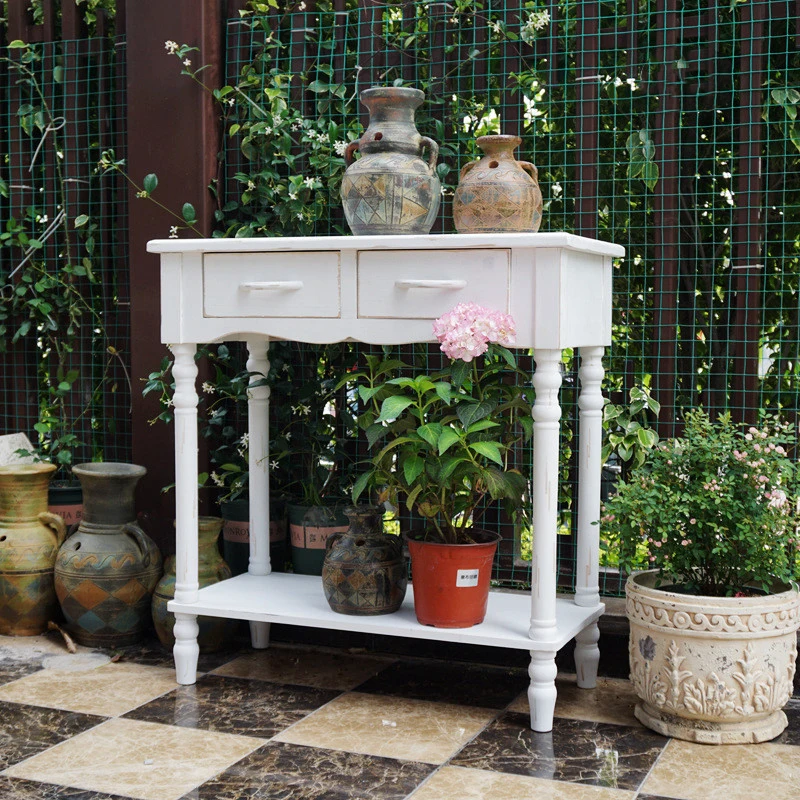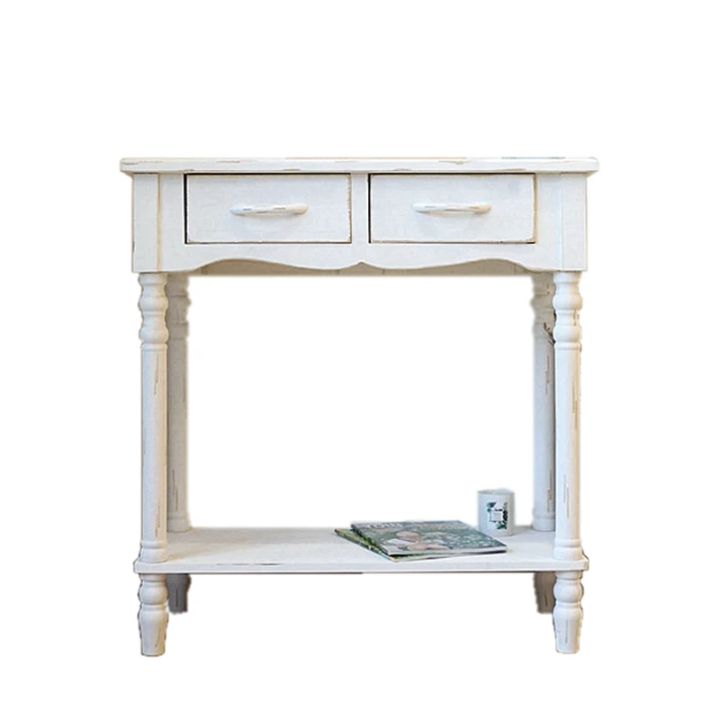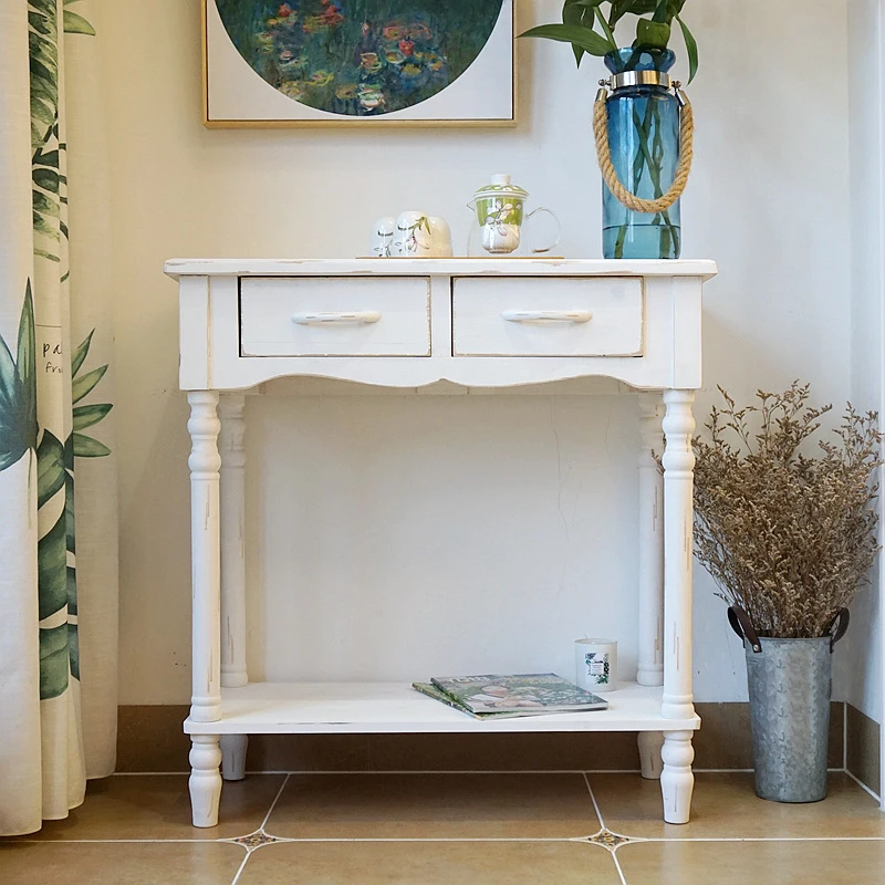Цельный Французский Консольный Столик ручной работы с эффектом потертости белого цвета