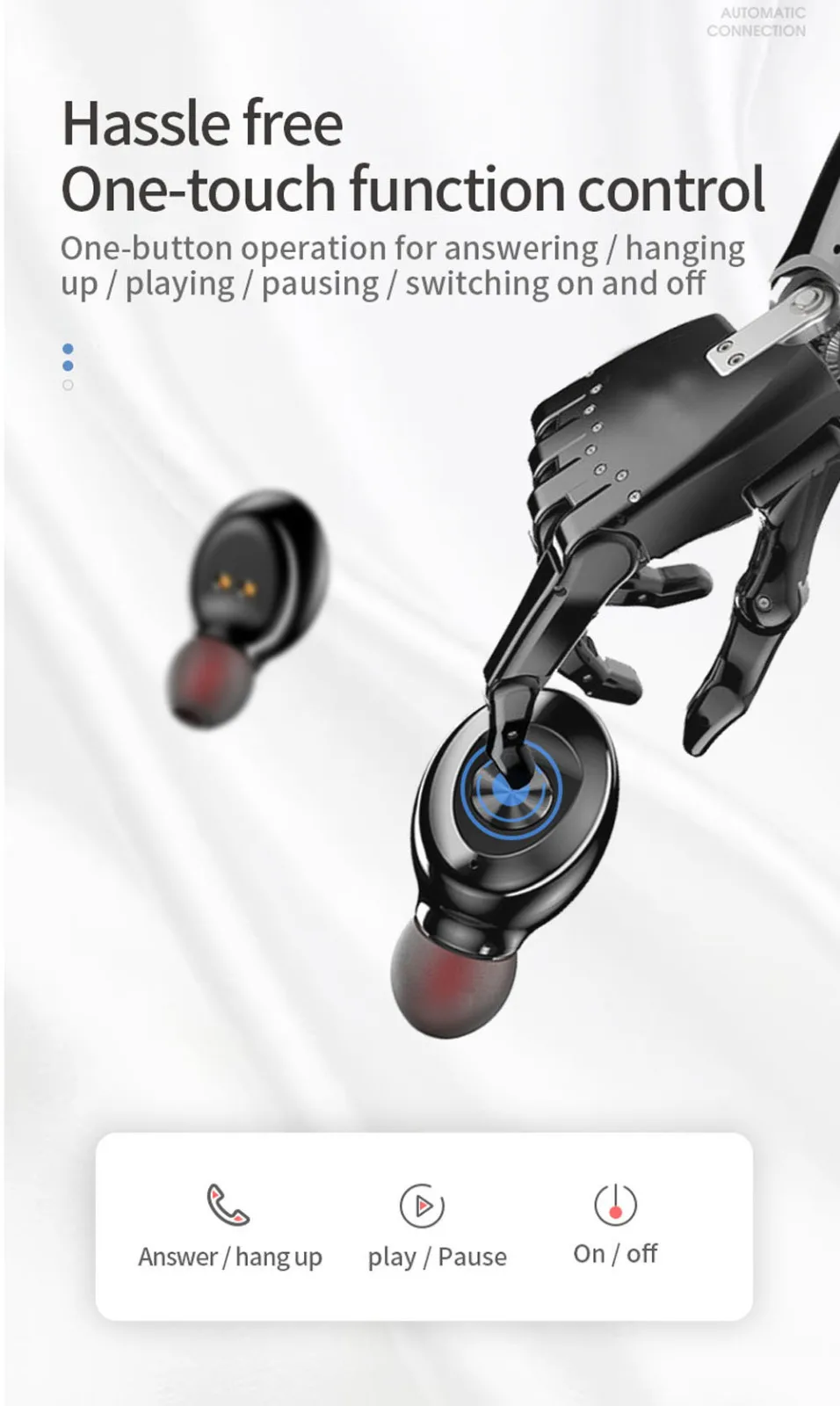 Модный акцент классическому стилю Внешний вид. Светодиодные цифровые дисплеи Количество электроэнергии. Зарядное устройство для мини-зарядки Каби Поддержка одновременной в течение длительного времени. Автоматическое подключение После того, как наушники вынута из зарядки Кэби без каких-либо операций. Отпечатков пальцев прикосновения Управление более удобен для использования. Bluetooth 5,0 версия не имеет Задержки, низкое энергопотребление и стабильный сигнал. Высокий уровень звука Качество без искажений.Технические характеристики: