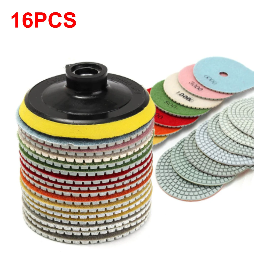 Особенности: Идеально подходит для гранита, бетона, мрамора, камня, плитки и т. д. Агрессивный и прочный, изготовлен из качественного алмазного порошка, пропитанного смоляной. Держатель для задней панели с отверстием для подачи воды, используется для влажной полировки. Алмазные полировальные колодки 4 дюйма влажные/сухие 16 шт набор гранитный камень Бетон мрамор. Спецификация: Материал: алмазный порошок и полимерный порошок Диаметр: 4 дюйма (10 см) Вес: 545 г Количество: 16 шт. Посылка включает в себя: 3X50Girt 3X100Girt 2X200 балок 2X400Girt 2X800Girt 1X3000Girt 1X6000Girt 1X10000 балок 1 задняя панель (M14)