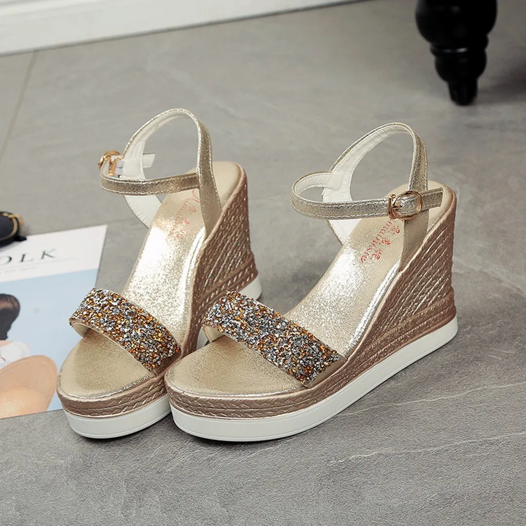 Женская обувь на танкетке с открытым носком; Сандалии с пряжкой; Пикантная элегантная Летняя обувь