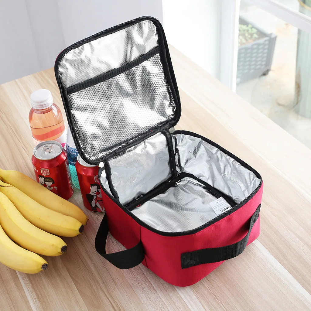 Сделано Изолированный и безопасный материал: Эта сумка для завтрака изготовлена из водонепроницаемого Оксфорда Ткань, хлопок с жемчугом и изолированная алюминиевая фольга.