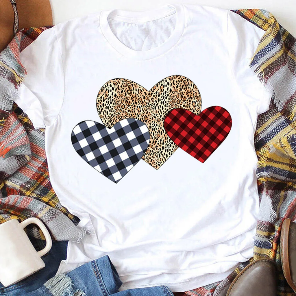 Женская клетчатая блузка с коротким рукавом с принтом Валентина Сердце Любви