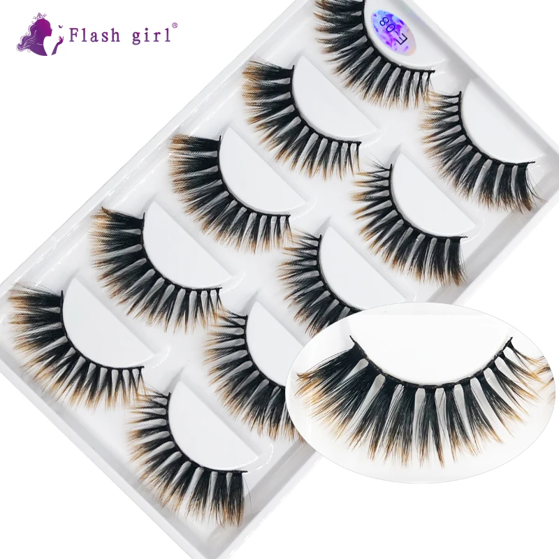Flash Girl Натуральный 5 пар ручной работы норковые накладные ресницы толстые крест-накрест Wispies Fluffies наращивание ресниц Макияж инструмент