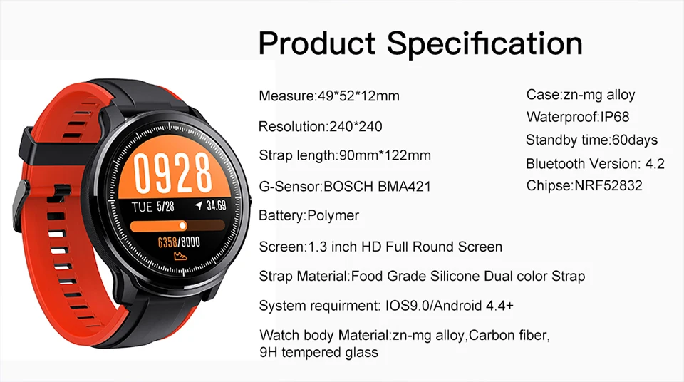 Kospet зонд 1,3 дюймов Смарт-часы для занятий спортом Фитнес трекер монитор здоровья Смарт-часы с Bluetooth