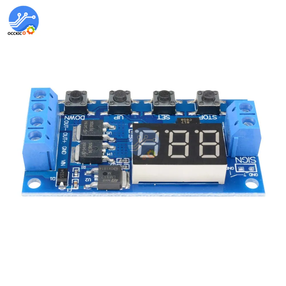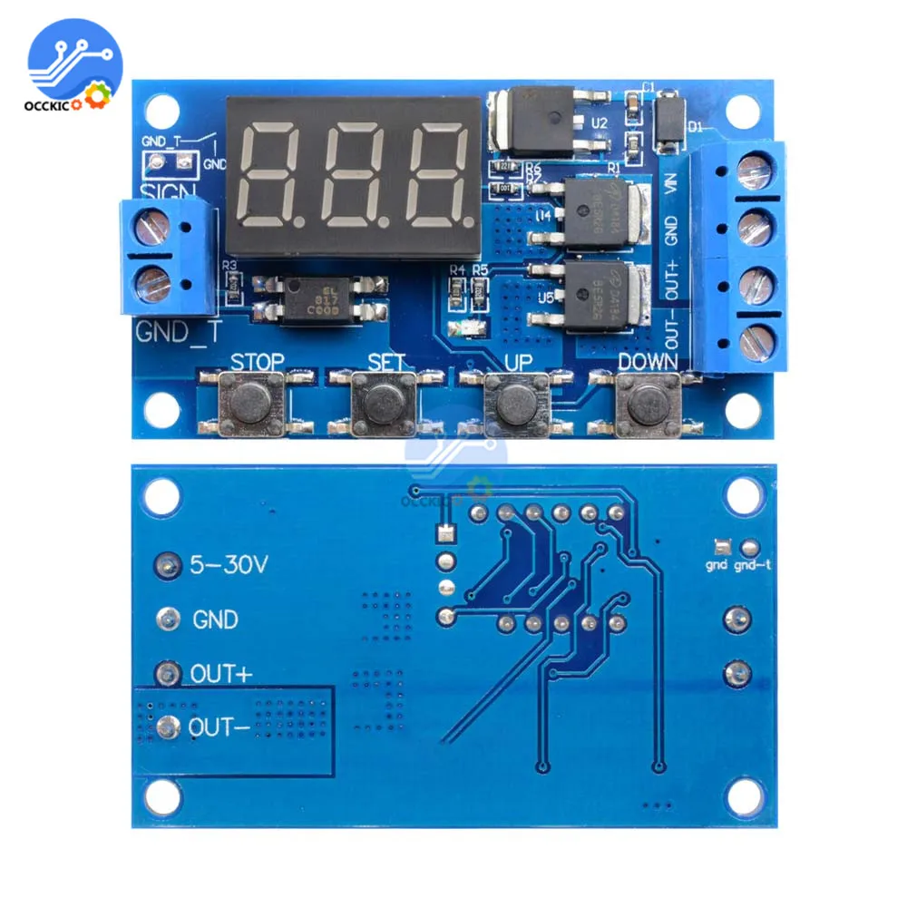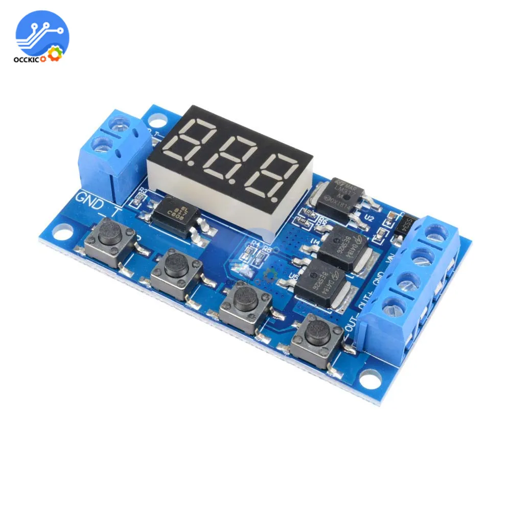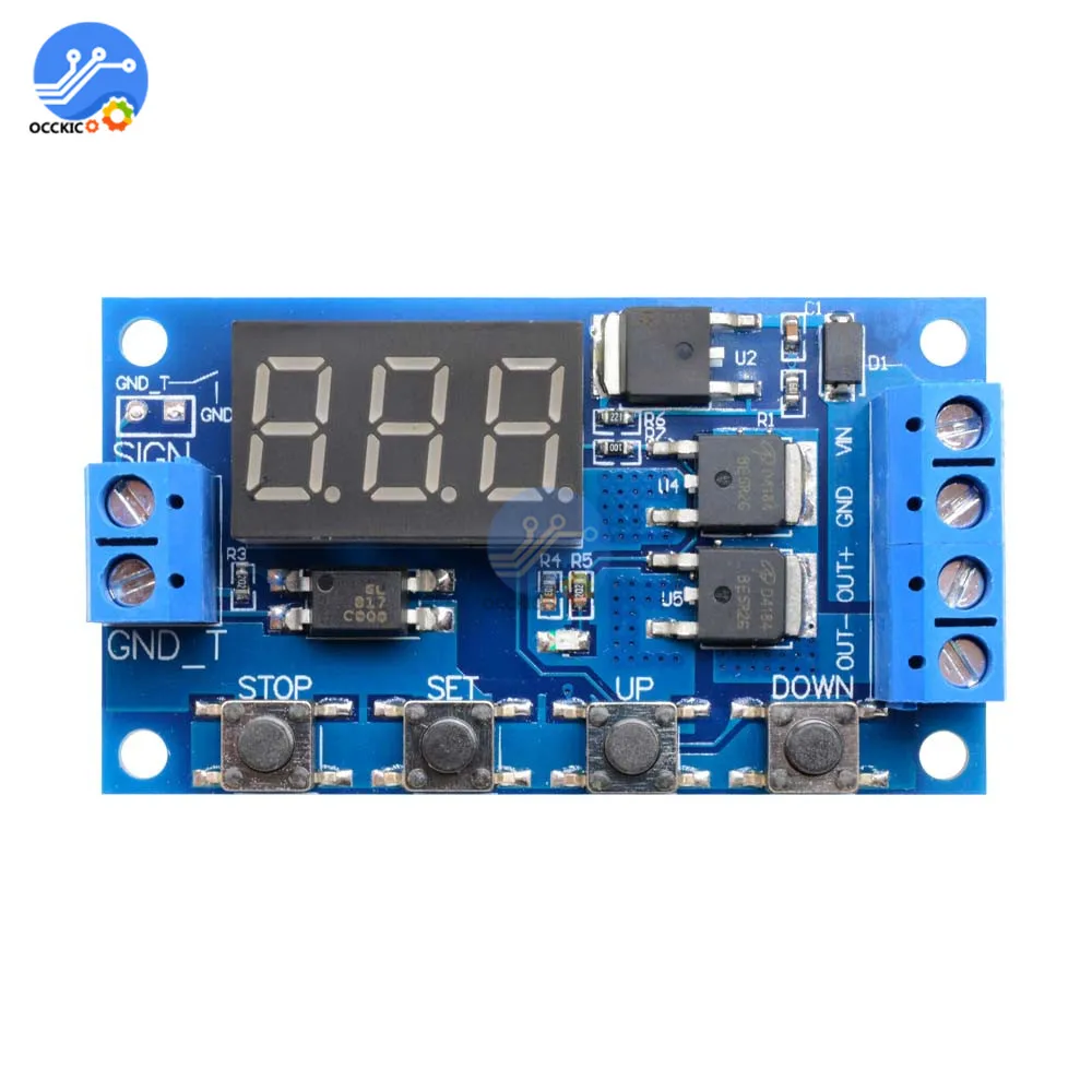 0,1 секунд (мин) до 999 минут (макс.) с плавной регулировкой. Этот продукт прост в использовании, много функций, но все покупатели должны внимательно прочитать инструкции, очень полезный продукт. Характеристики и использование модуля: Для быстрого включения и выключения цепи неограниченное количество переключений; Процесс проведения и резки не создает шума, нет искры, Нет электромагнитных помех; По сравнению с электромагнитными релейными продуктами, более длительный срок службы; Параллельный привод dual-MOS, более низкое сопротивление, более ток, сильная мощность; При комнатной температуре, рабочий ток до 15а, мощность до 400 Вт, для наиболее эффективного использования оборудования; Очень удобный способ управления двигателем, освещением, светодиодный, двигатель постоянного тока, микронасосы, СОЛЕНОИДНЫЕ клапаны и т. д. Основные характеристики: Широкий вход напряжения (5 ~ 36 В), большинство устройств можно использовать, очень удобно; Интерфейс четкий и простой, мощный, легко понять, удовлетворить почти все ваши потребности; Функция аварийной остановки (кнопка «стоп»); С защитой от обратной полярности, обратная полярность не сгорит продукт. Увеличьте режим сна, если этот режим включен, без какой-либо операции в течение 5 минут, затем автоматически Выключите монитор, при любом пробуждении ключа; Вы можете задать различные параметры OP, CL, LOP, которые не зависят друг от друга и автоматически сохранены; После выключения модуля все настройки параметров не теряются. Режим работы: P1: Триггерный сигнал, реле включено время «OP», а затем Отключено; В «OP» время, следующим образом: P1.1: сигнал срабатывает снова, недействителен P1.2: сигнал срабатывает снова, часы сбрасываются P1.3: триггер сигнала снова, выключить, остановить часы; P-2: триггер, реле выключено «CL» времени, реле на «OP» время, а затем отсоединить реле; P3.1: Триггерный сигнал, реле включается после времени «OP», реле выключено «CL», затем рабочий цикл, если период триггерного сигнала, реле выключено, остановить часы; Количество циклов ("LOP") может быть установлено. P3.2: без сигнала запуска, реле включено в «OP» время, реле выключено «CL» время, и было Велоспорт; Частота («LOP») цикл может быть установлен; P-4: Функция удержания сигнала. Если сигнал пускового механизма отключен, реле остается включено; Когда сигнал исчезает, после времени «OP» реле; Если другой сигнал во время синхронизации, синхронизации очищается; Параметры продукта: 1: Рабочее напряжение: 5-36 в. 2: Источник запуска: Активные виды деятельности-высокая (3,0 V-24V), изоляция оптопары для могут улучшить системы способность анти-помех (клиенты могут также короткого замыкания соприкосновения). 3: Выходная мощность: 5 В-36 В постоянного тока, при комнатной температуре, непрерывный ток 15А, мощность 400 Вт! Улучшите условия рассеивания тепла, максимальный ток до 30А. 4: тихий ток: 20 мА; Рабочий ток: 50 мА 5: в течение всего срока эксплуатации: каким-либо времен переключения; Рабочая температура: от-40 до 85; Размеры: 6,0*3,4*1,2 см. 6: с изоляцией оптопары, улучшенной Защитой от помех, промышленная доска. Обратите внимание на следующее: Модуль является активным выходом, выходное напряжение равно входному напряжению. 2.'DC +' и 'нагрузка +' это внутреннее короткое замыкание полюсов, но 'DC- ' и 'нагрузка-' полюсы во время использования не могут быть сокращены, в противном случае нагрузка 