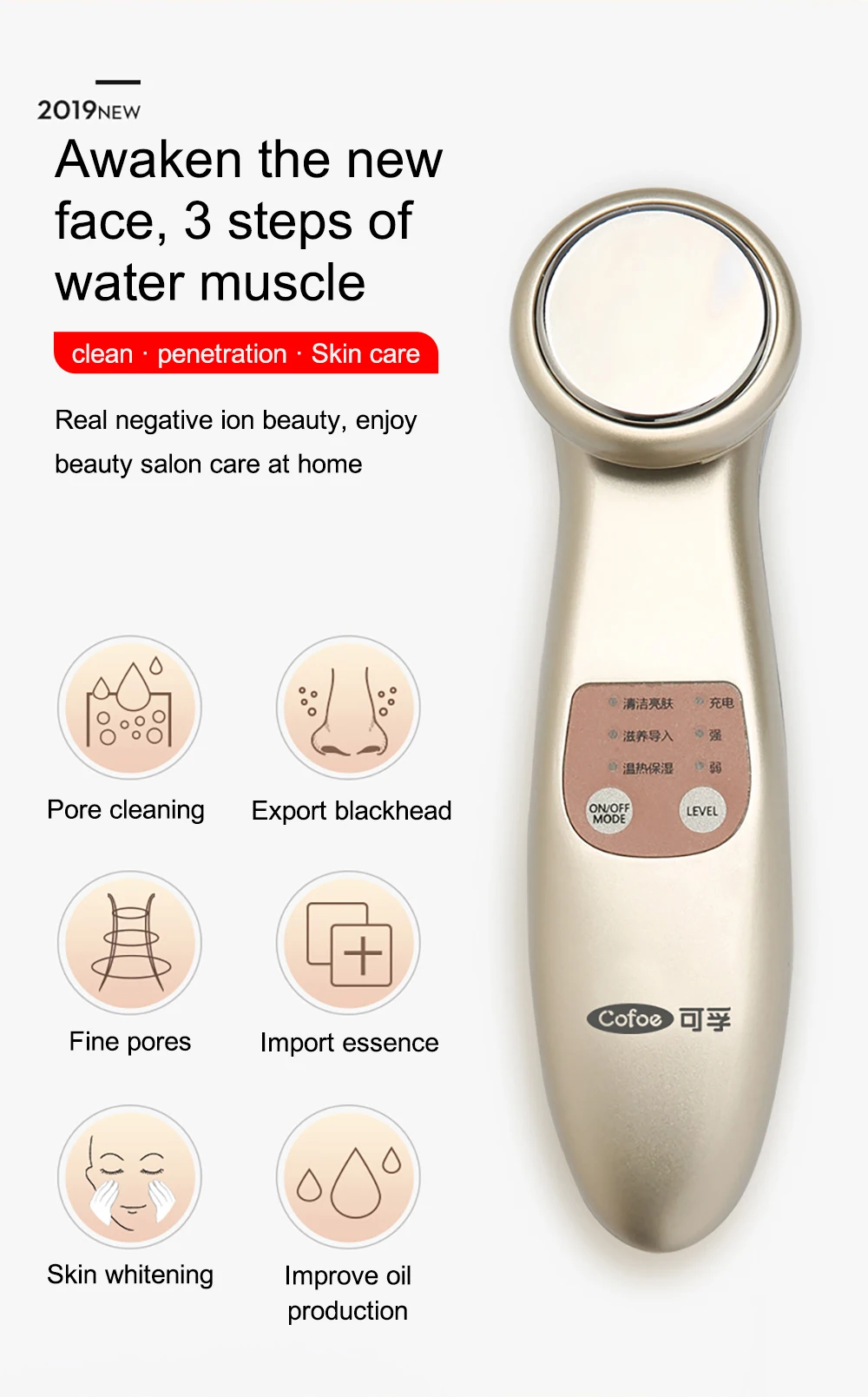 Cofoe косметический инструмент для лица, импортирующий эссенцию, инструмент для глубокой очистки ионов, компактный Массажер для пор, уход за кожей, косметическое устройство