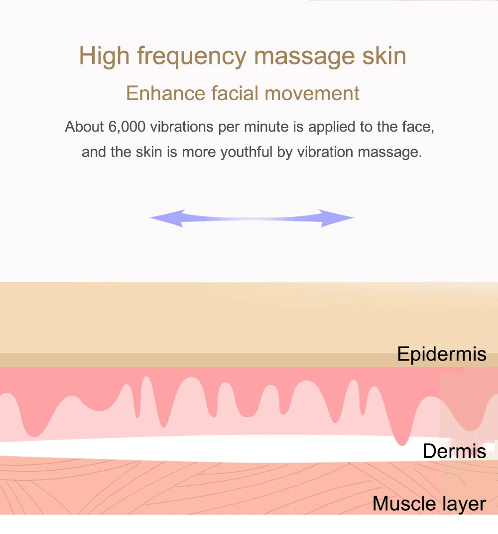 Около 6000 вибраций в минуту наносится на лицо, и кожа более молода вибрационным массажем.