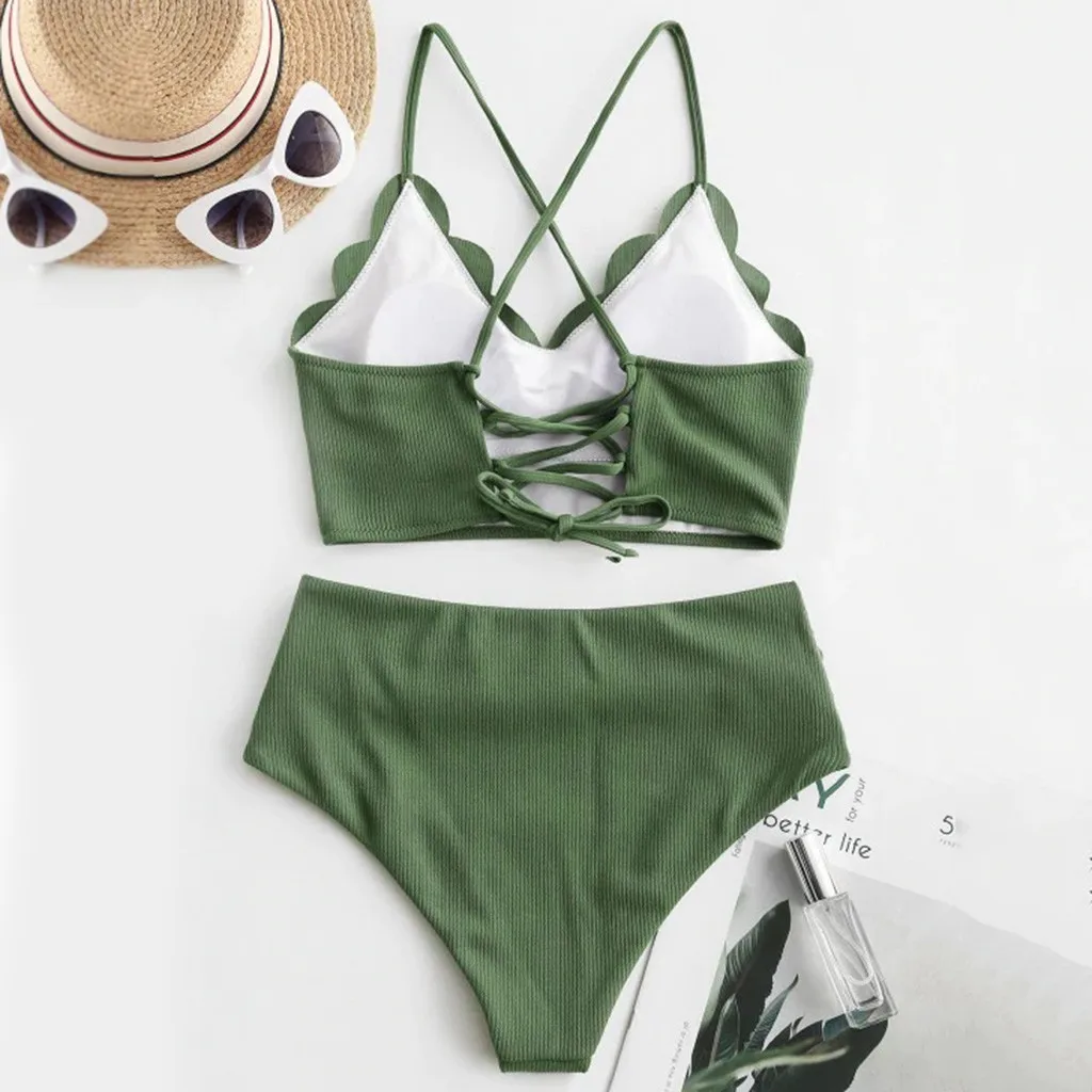3.Шнуровка сзади. Сексуальный Топ бикини и низ с высокой талией, хорошо прикрывают живот.