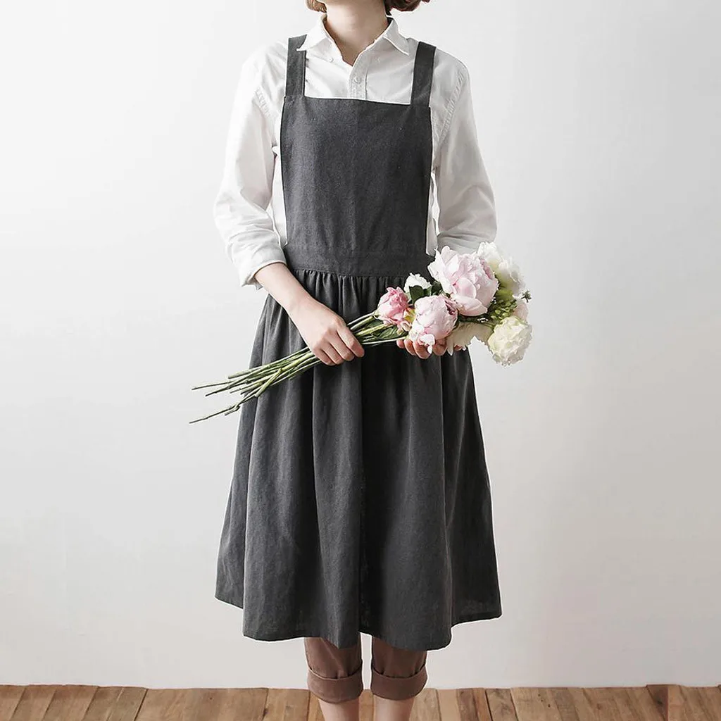 Женское льняное платье без рукавов для домашней кухни, милое платье с цветочным рисунком, фартук передник