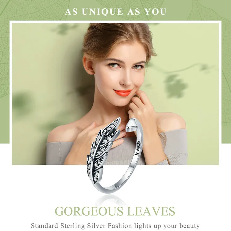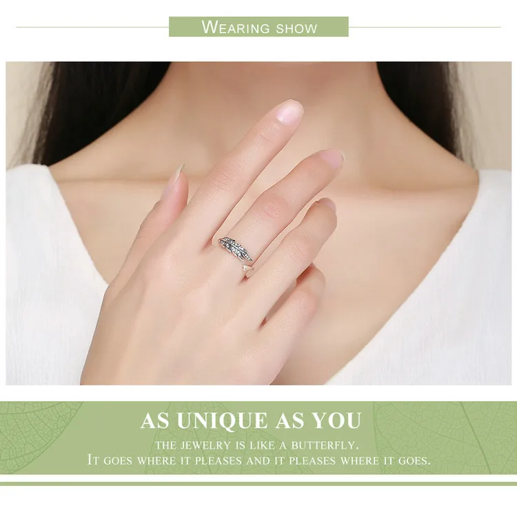 Hot Sale Authentic 925 Sterling Silver Feather Wings Adjustable Finger Ring for Women Sterling Silver Jewelry Gift SCR313