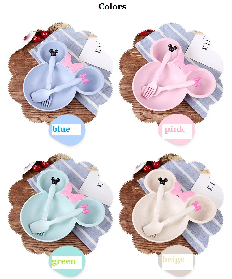 Название продукта: детский набор посуды с героями мультфильмов Материал: пшеничная солома Особенности: с изображением героев мультфильмов Цвет: зеленый, розовый, бежевый, синий Посылка включает в себя: тарелку, ложку, вилку