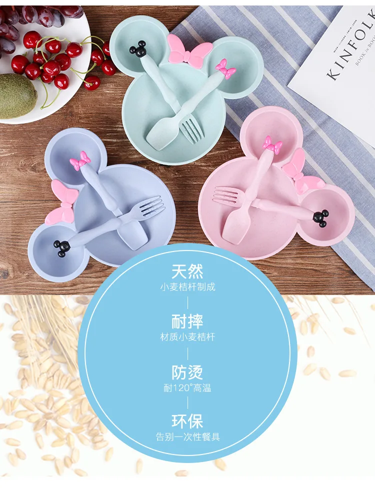 Детская посуда с рисунком из пшеничной соломы, набор посуды, Детская тарелка, обучающая миска, ложка, вилка, милые блюда, детская чашка, тарелка, набор посуды