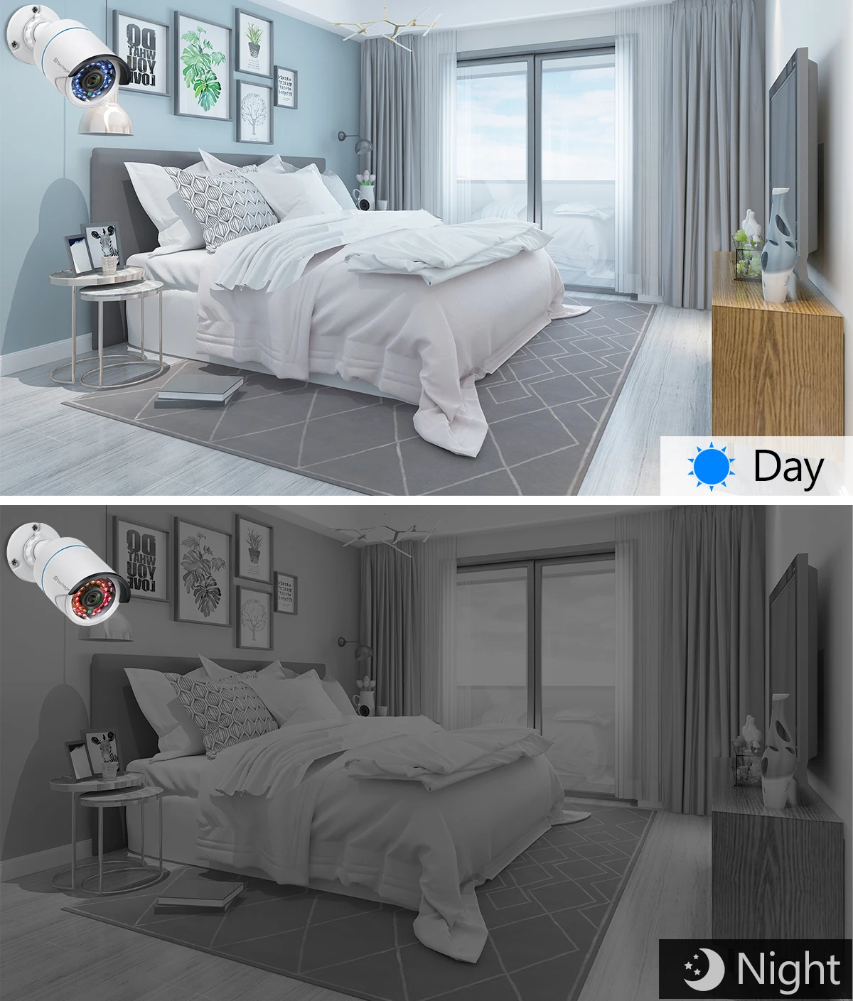 Умный фильтр, отсекающий ИК-спектр автоматически переключается между днем и ночью, чтобы уменьшить цвет в дневное время и повысить яркость изображения ночью, убедившись, что вы можете получить яркие кадры наблюдения от рассвета до темноты
