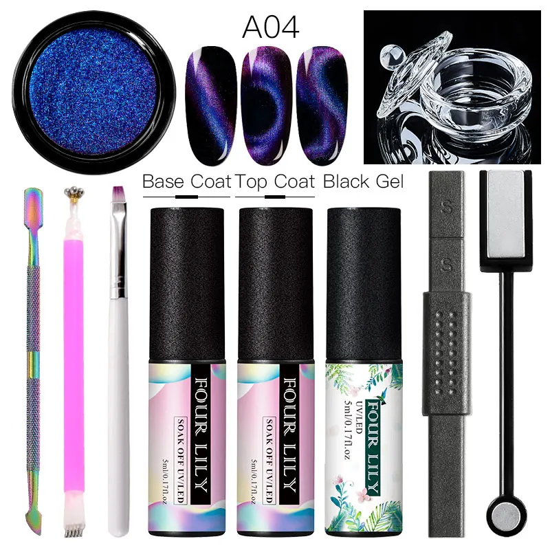 3. Нанесите УФ-покрытие без протирания (не вылечивайте), используйте магнитную палку близко к ногтю (когда линия кошачий глаз образует, поместите ее под УФ-лампу или светодиодный светильник быстро)