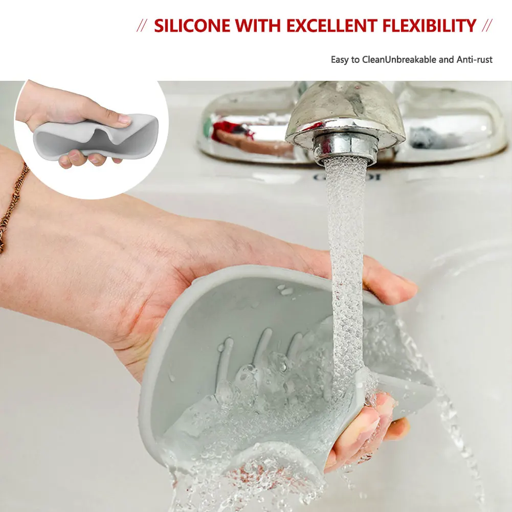 4. [легко чистить и противоскользить]: из-за гибкой характеристики силикона, любой угол очень легко чистить. Противоскользящие Силиконовые Слюнявчики обеспечивают большое трение, мыльница не попадает в раковину и мыло тоже.
