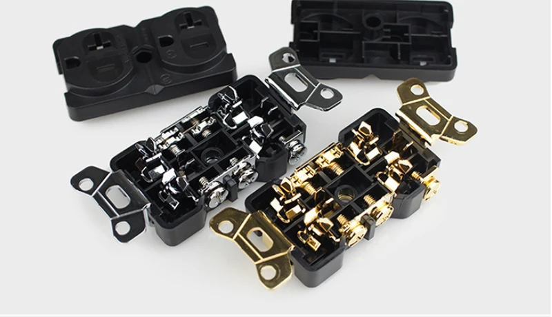 The difference between the red and black sockets of the same version is that the plastic color of the panel is different, and the others are exactly the same. The earphone version and the earphone version are only different in appearance. Only the earless socket core can be used with the wall plug panel. The iron material, copper plate, and gold-plated version of the power socket core have the same metal material and thickness, and they are all made of phosphor copper. The difference between the iron plate and the copper plate is the ground wire metal plate at the bottom of the back. The iron plate uses iron-plated nickel, and the copper plate uses brass. The difference between the copper plate and the gold-plated plate is that the metal in the iron plate, copper plate, and ferrule is plated with 1U real gold. The gold-plated version is very thick, about eight times the former. The rhodium-plated version of the core metal is over-frozen.