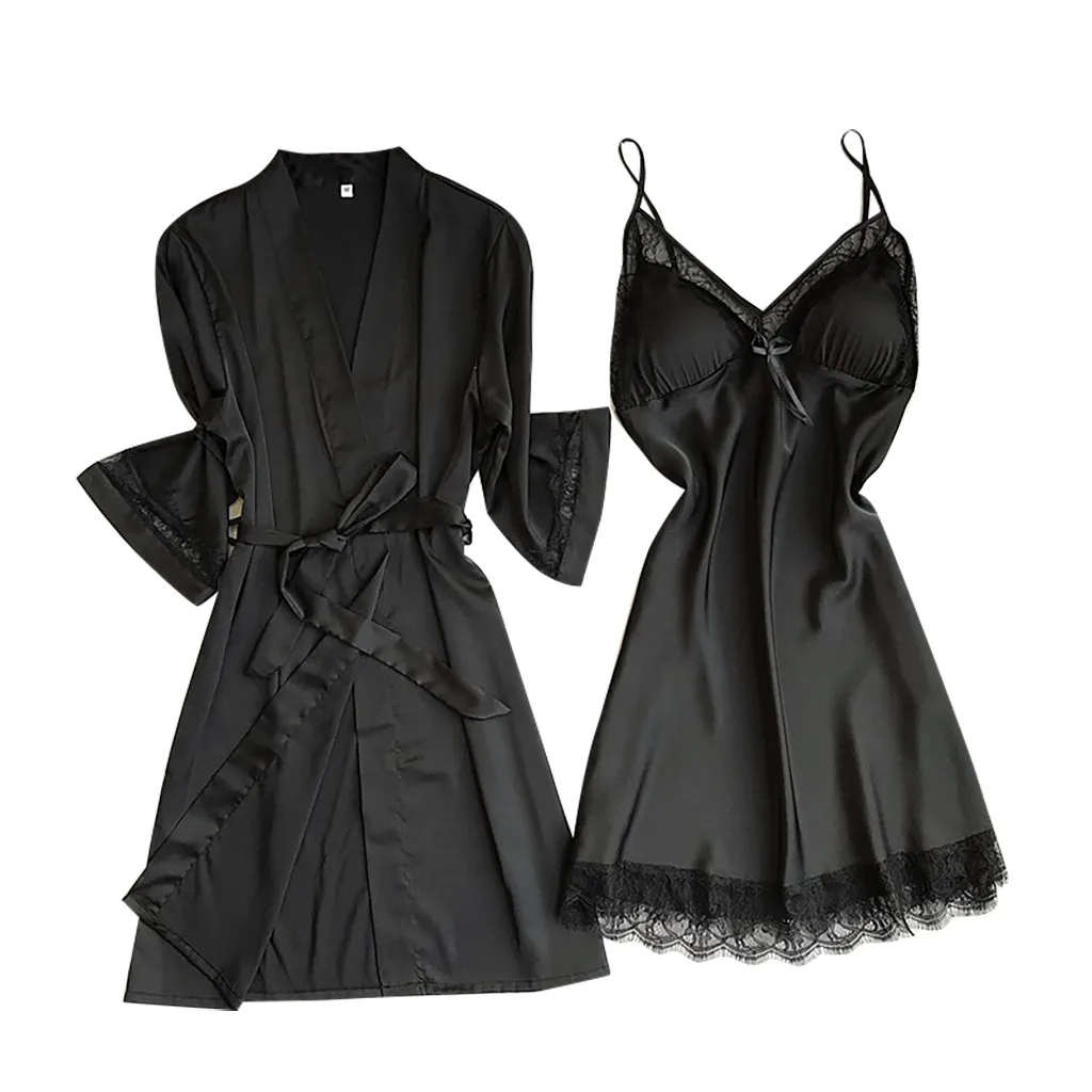 Атласная женская ночная рубашка черного цвета с длинным рукавом, ночная рубашка с поясом, ночное белье, ночное белье Koszula Nocna, новинка 2020