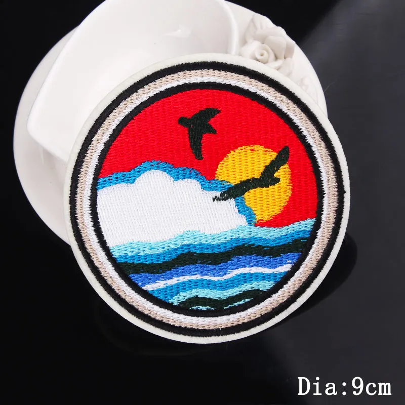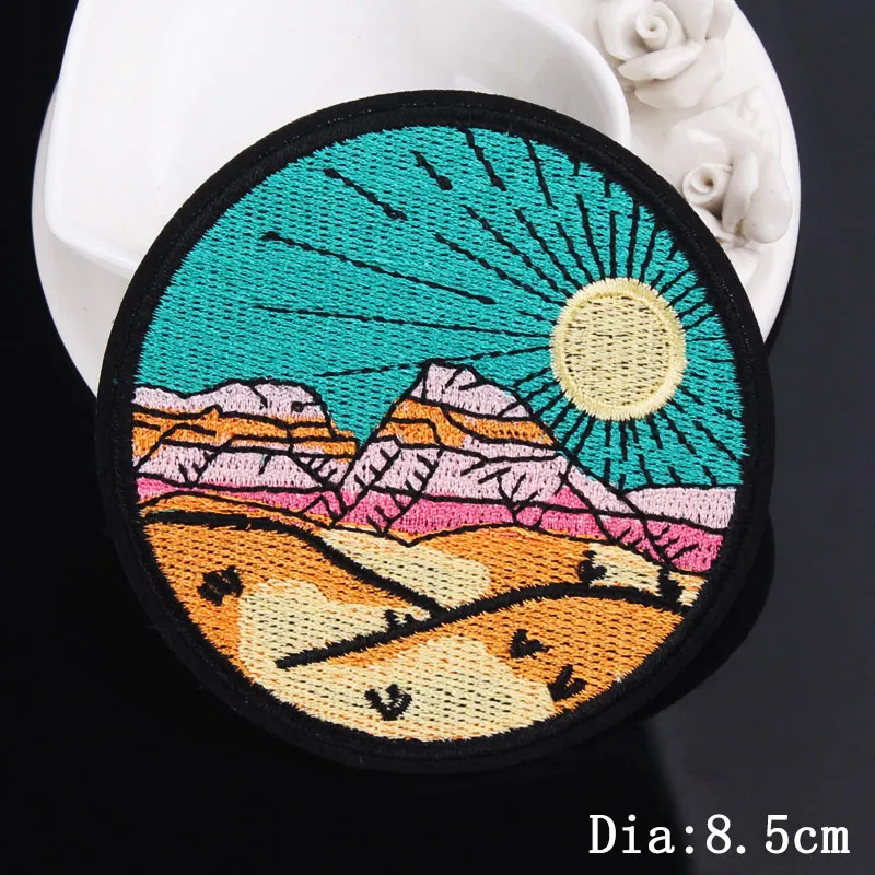 Нашивки в космическом пространстве Rocket Sunrise Sunset горный вышитый Пешие прогулки патч пришивной железной аппликацией значок для джинсовой куртки шляпа