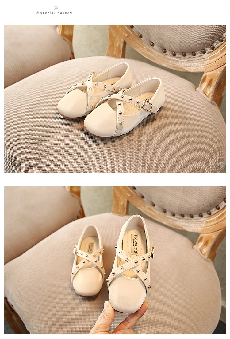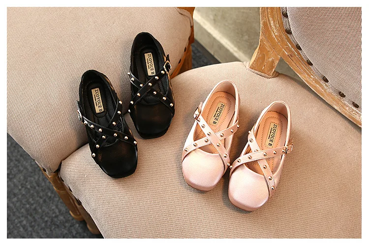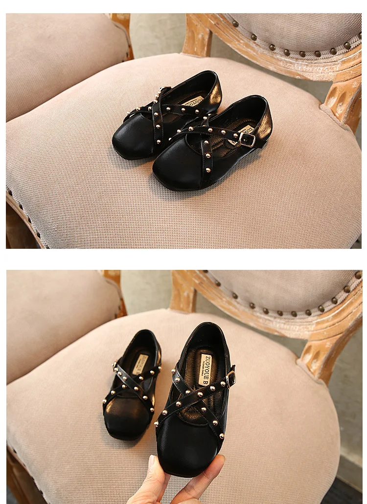 Весенняя детская обувь принцессы; Обувь на плоской подошве с заклепками для маленьких девочек; Детская черная кожаная обувь; Мягкая Брендовая обувь для малышей; Модная обувь Mary Jane