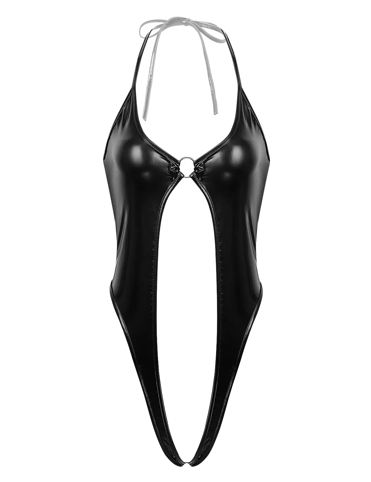 Women’s hot one-piece shiny metallic lingerie thong leotard bodysuit, one size fits most.