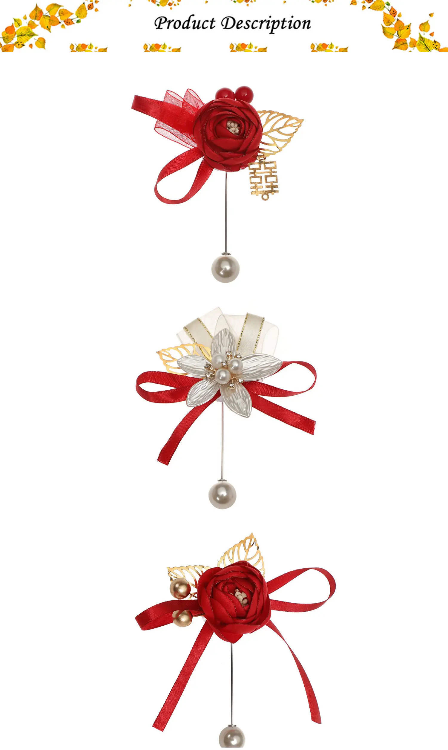 1 шт. броши в форме цветка розы ручной работы изготовлены из атласа и сплава. Цветоизмеритель составляет около 6-7 см, общая длина штифта, включая жемчужные бусинки, составляет около 10 см